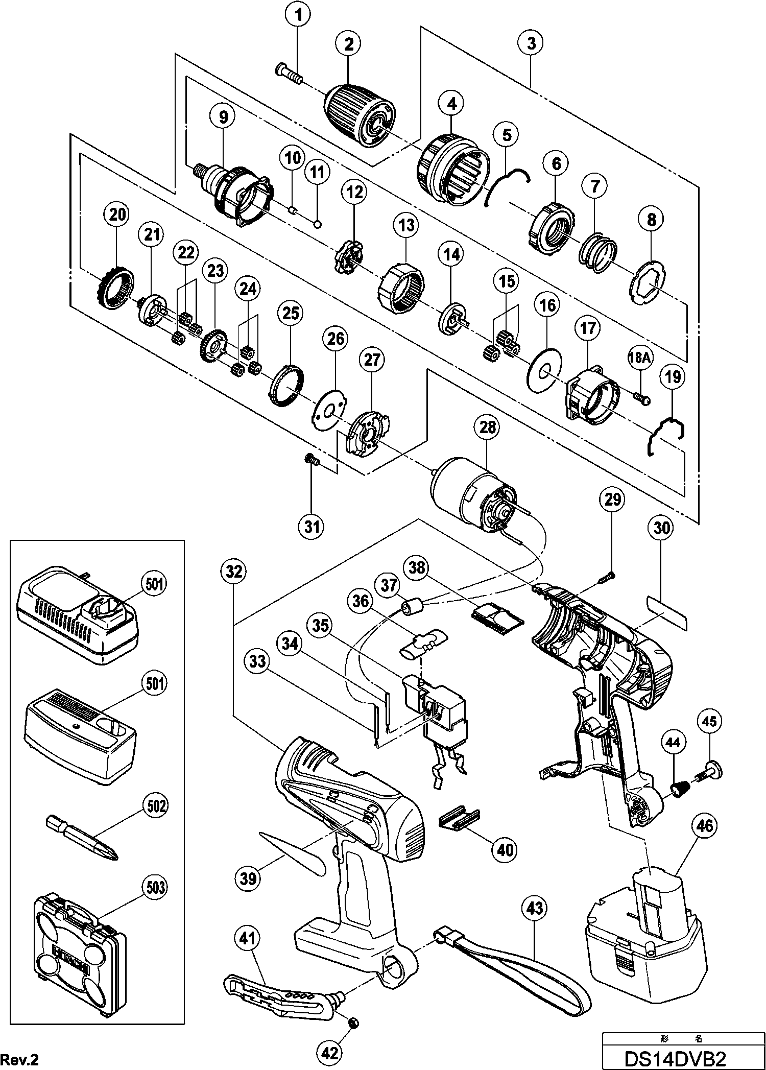 Liste de pièces de rechange des Hikoki DS14DVB2