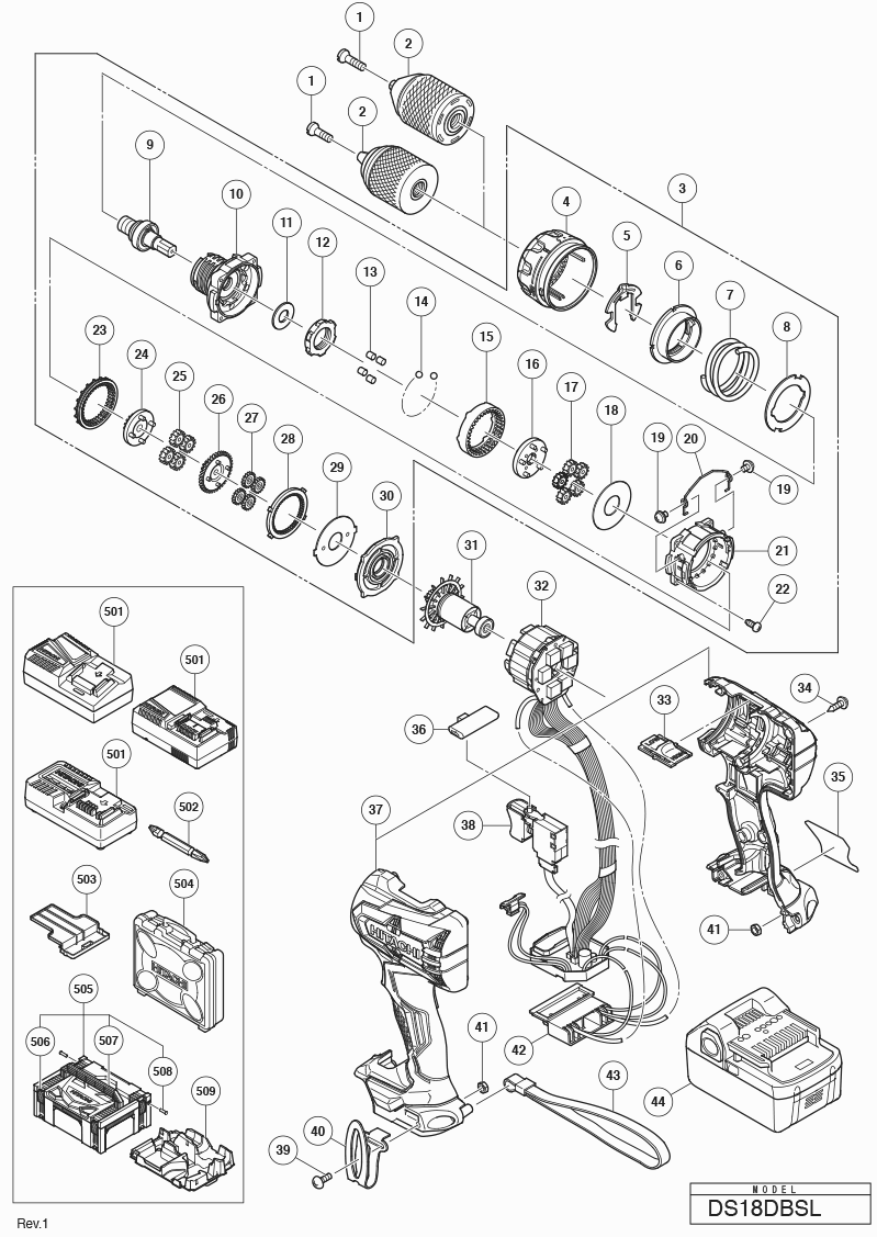 Liste de pièces de rechange des Hikoki DS18DBSL