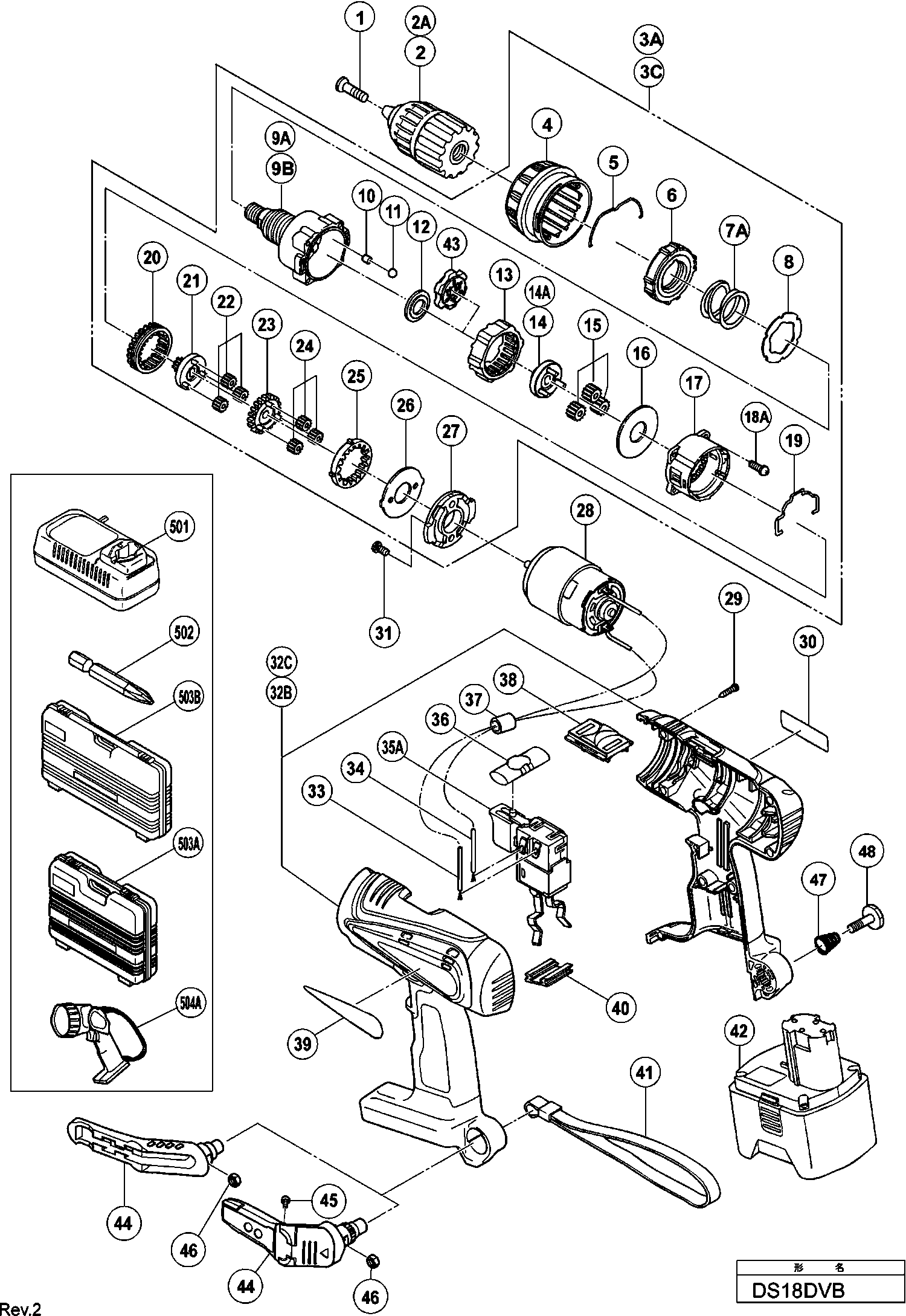 Liste de pièces de rechange des Hikoki DS18DVB