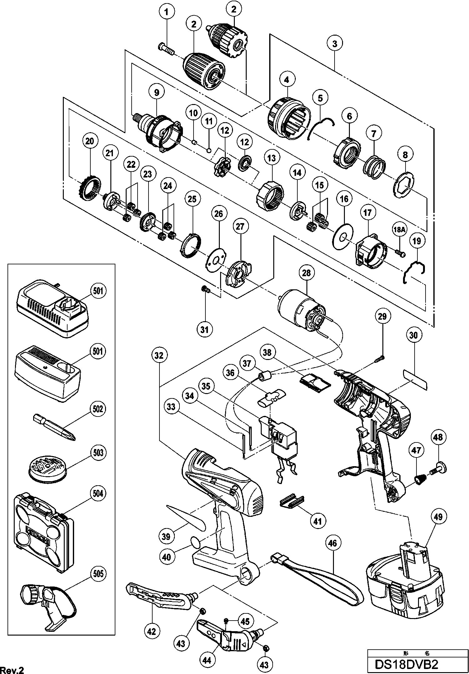Liste de pièces de rechange des Hikoki DS18DVB2