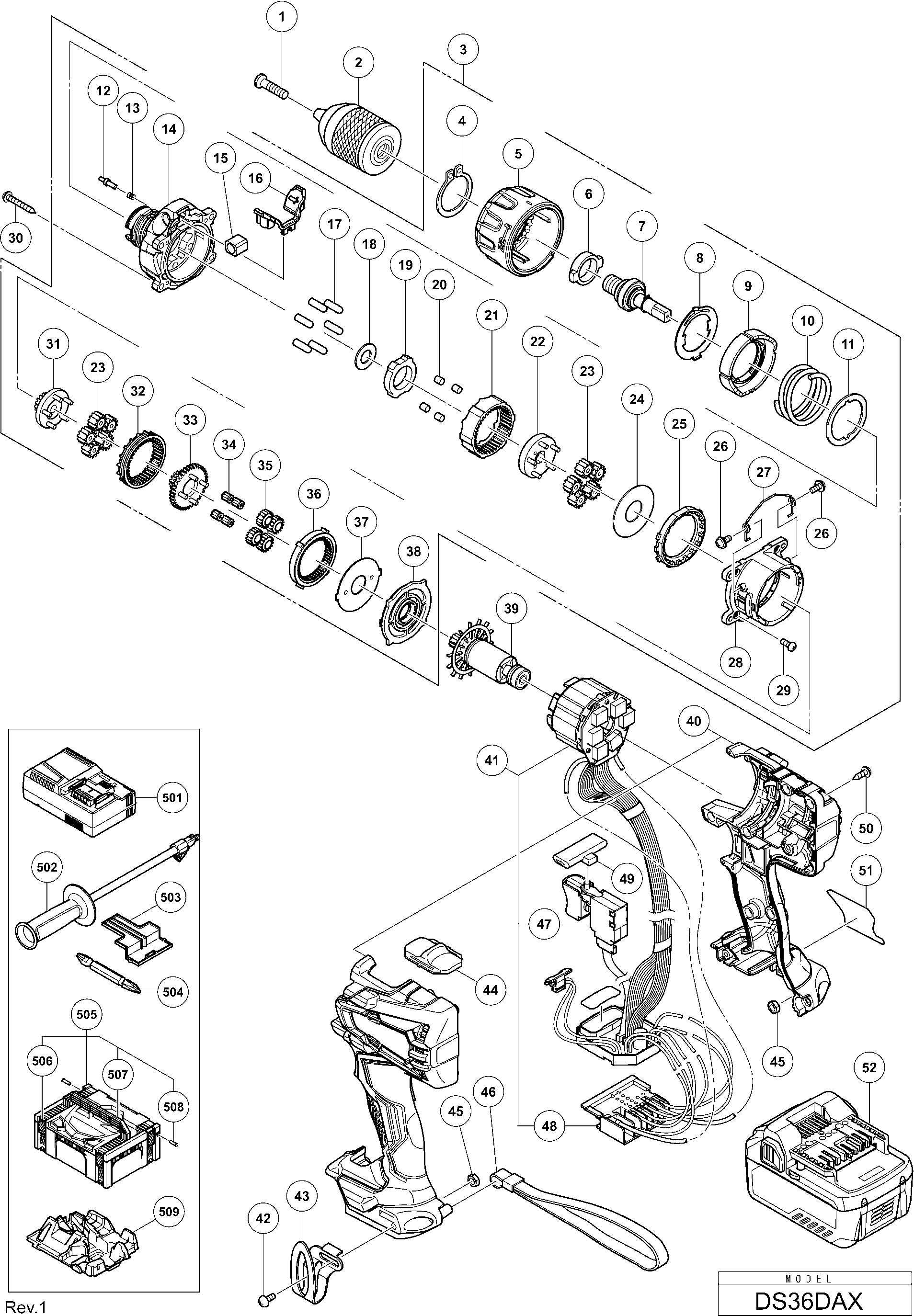 Vous trouverez ici toutes les pièces et dessins disponibles du 'Hikoki DS36DAX'. De là, vous pouvez commander directement toutes les pièces souhaitées. De nombreuses pièces doivent être commandées auprès du fabricant, selon la marque, cela prend une à quatre semaines. Toutes les informations dont nous disposons se trouvent sur notre site Web, nous ne pouvons pas vous conseiller sur ce dont vous avez besoin, pour cela vous devrez retourner la machine pour réparation. Veuillez noter ce qui suit lors de la commande: