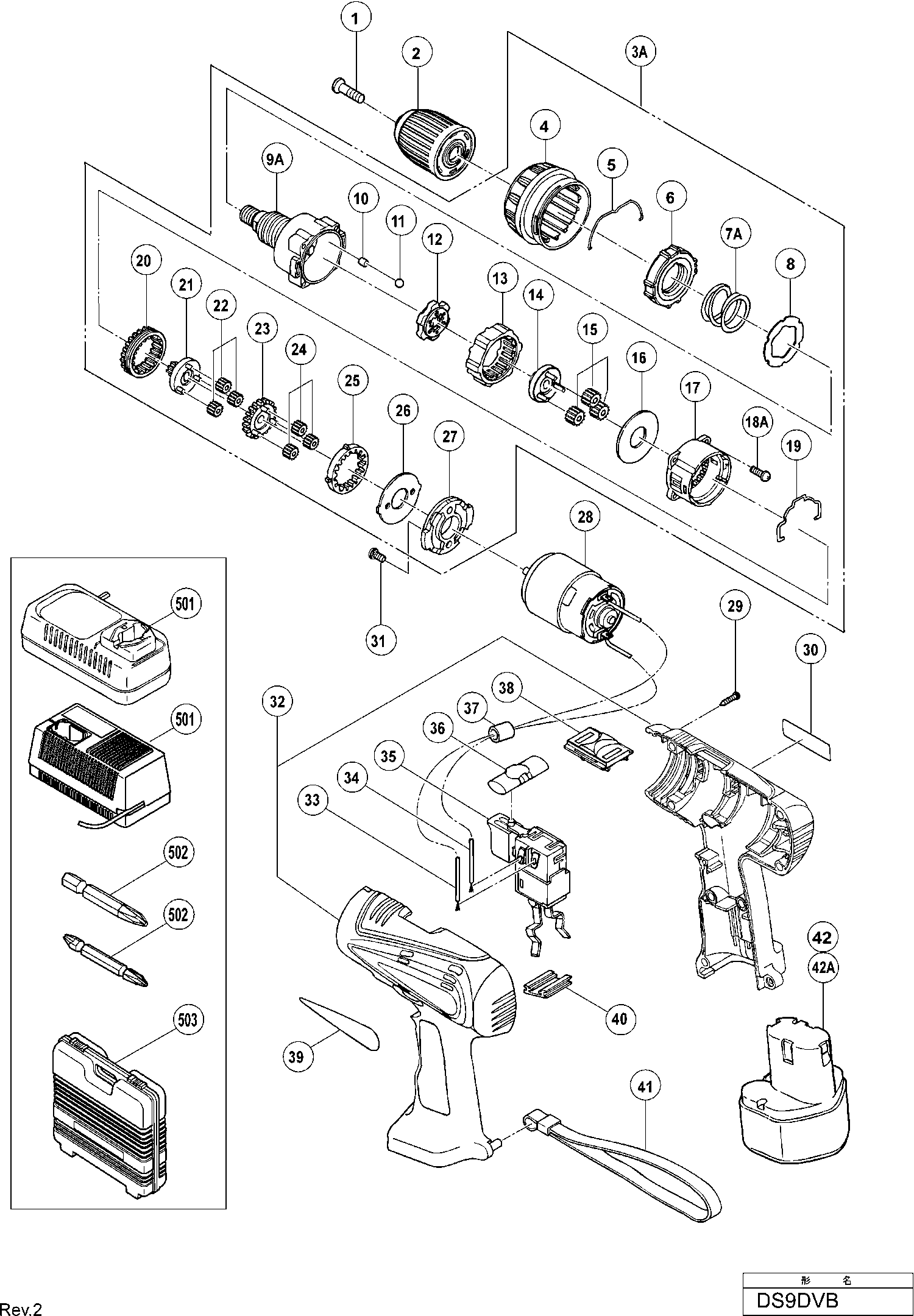 Liste de pièces de rechange des Hikoki DS9DVB
