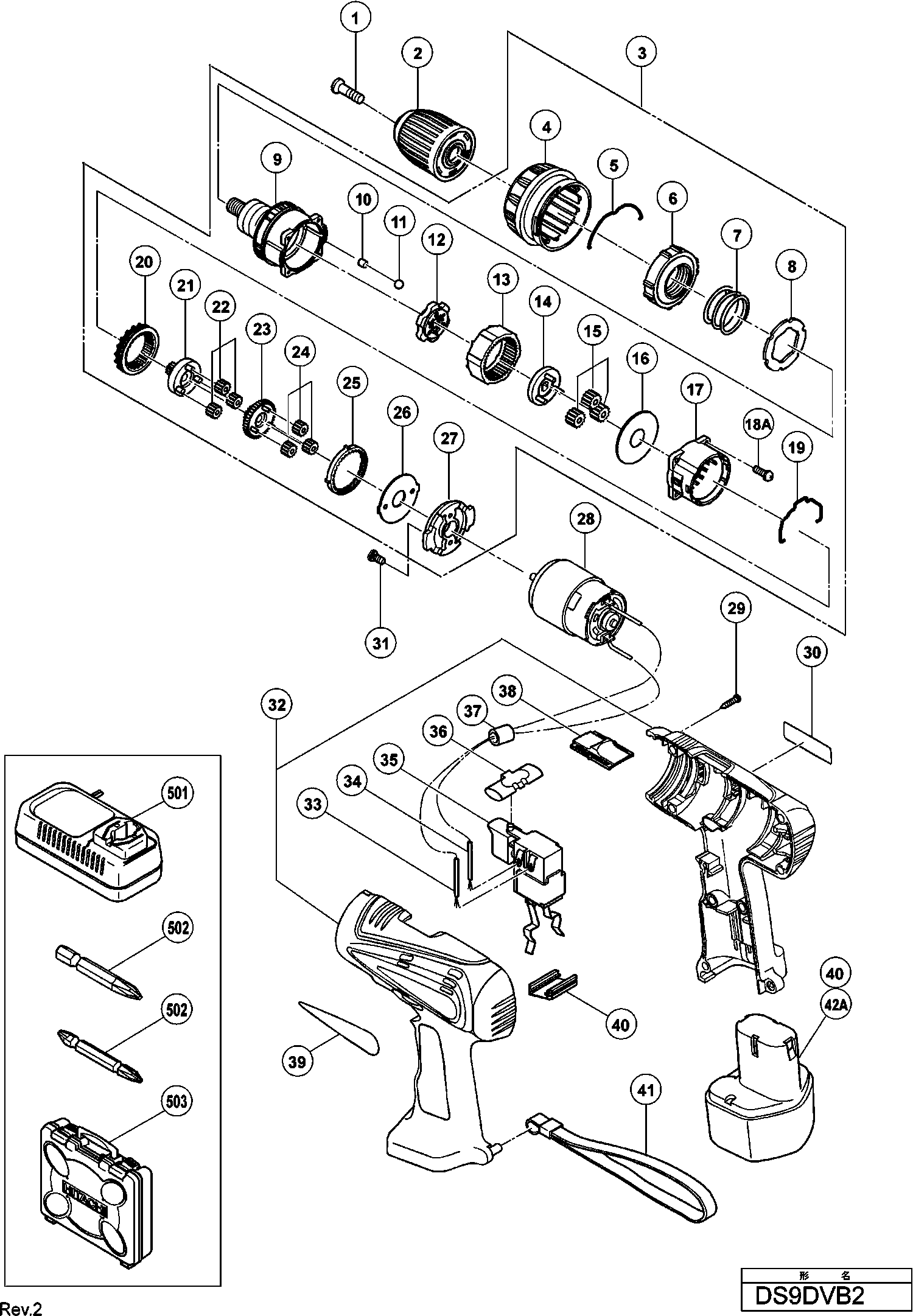 Liste de pièces de rechange des Hikoki DS9DVB2