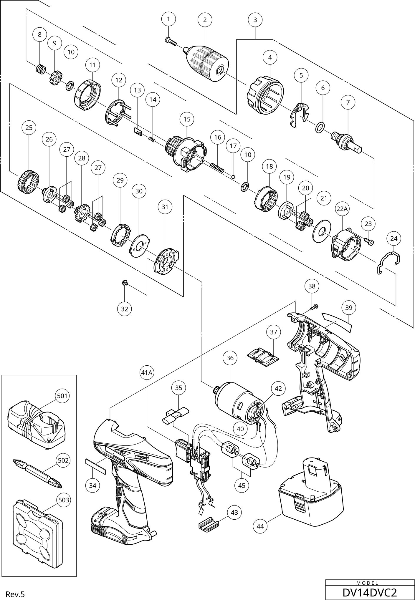 Liste de pièces de rechange des Hikoki DV14DVC2