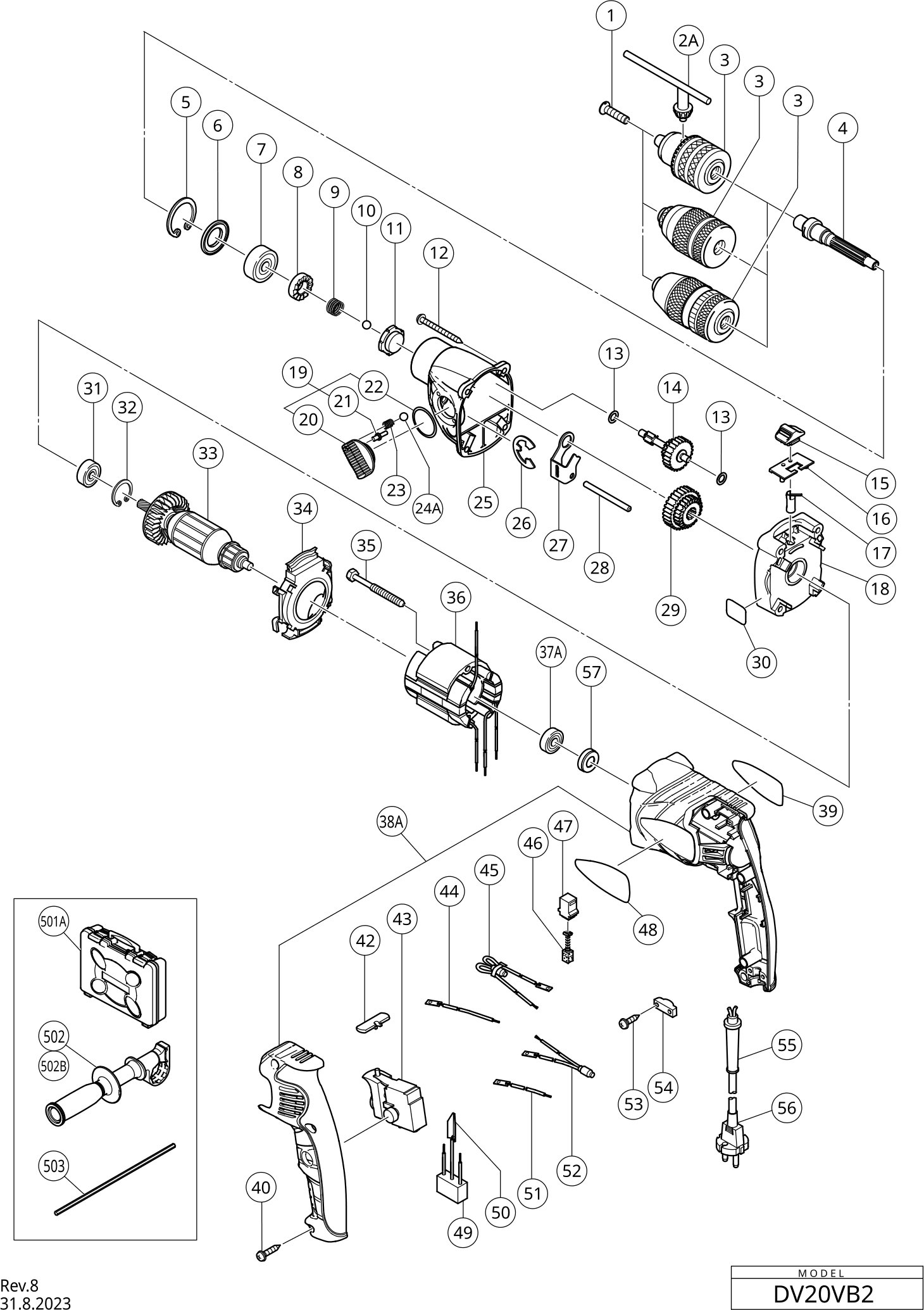 Vous trouverez ici toutes les pièces et dessins disponibles du 'Hikoki DV20VB2'. De là, vous pouvez commander directement toutes les pièces souhaitées. De nombreuses pièces doivent être commandées auprès du fabricant, selon la marque, cela prend une à quatre semaines. Toutes les informations dont nous disposons se trouvent sur notre site Web, nous ne pouvons pas vous conseiller sur ce dont vous avez besoin, pour cela vous devrez retourner la machine pour réparation. Veuillez noter ce qui suit lors de la commande: