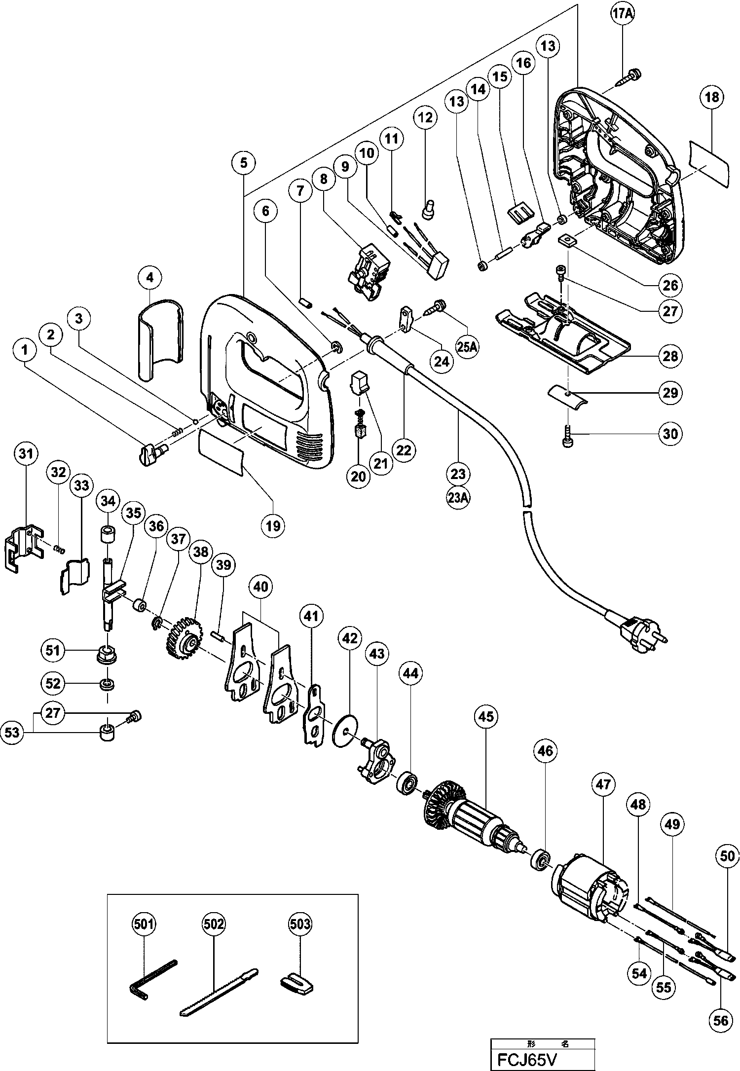 Vous trouverez ici toutes les pièces et dessins disponibles du 'Hikoki FCJ65V'. De là, vous pouvez commander directement toutes les pièces souhaitées. De nombreuses pièces doivent être commandées auprès du fabricant, selon la marque, cela prend une à quatre semaines. Toutes les informations dont nous disposons se trouvent sur notre site Web, nous ne pouvons pas vous conseiller sur ce dont vous avez besoin, pour cela vous devrez retourner la machine pour réparation. Veuillez noter ce qui suit lors de la commande: