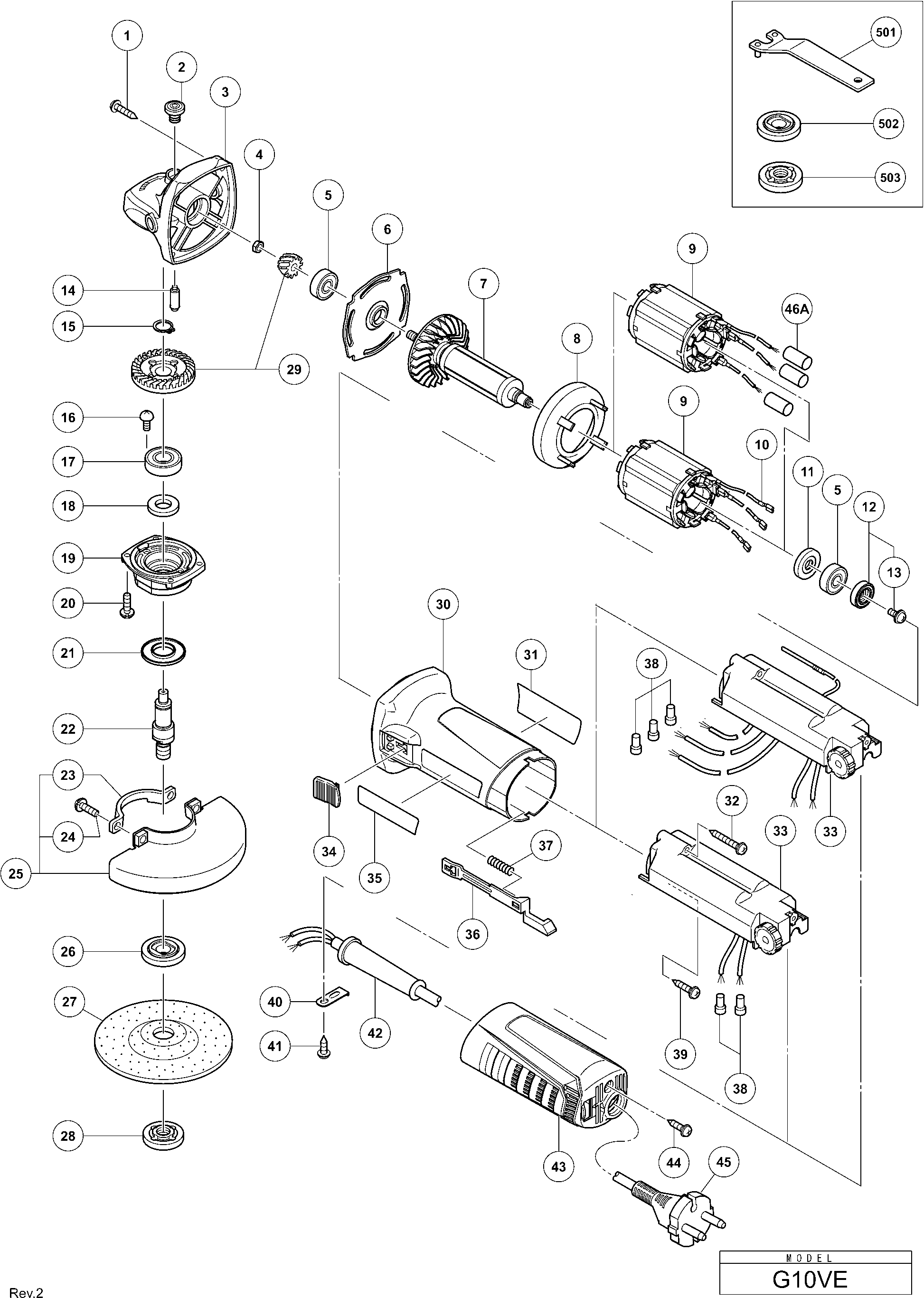 Vous trouverez ici toutes les pièces et dessins disponibles du 'Hikoki G10VE'. De là, vous pouvez commander directement toutes les pièces souhaitées. De nombreuses pièces doivent être commandées auprès du fabricant, selon la marque, cela prend une à quatre semaines. Toutes les informations dont nous disposons se trouvent sur notre site Web, nous ne pouvons pas vous conseiller sur ce dont vous avez besoin, pour cela vous devrez retourner la machine pour réparation. Veuillez noter ce qui suit lors de la commande: