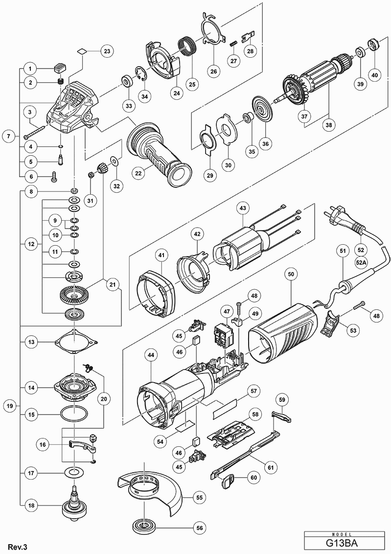 Liste de pièces de rechange des Hikoki G13BAWQZ