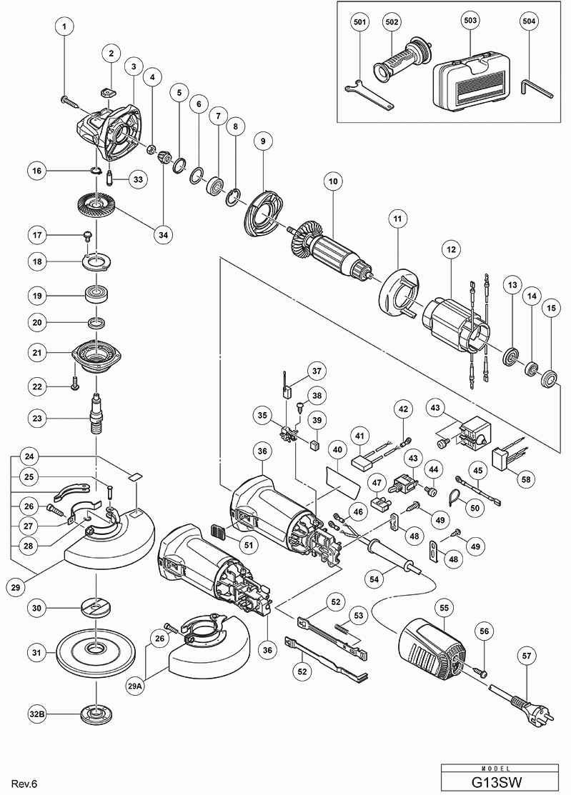 Liste de pièces de rechange des Hikoki G13SWYMZ