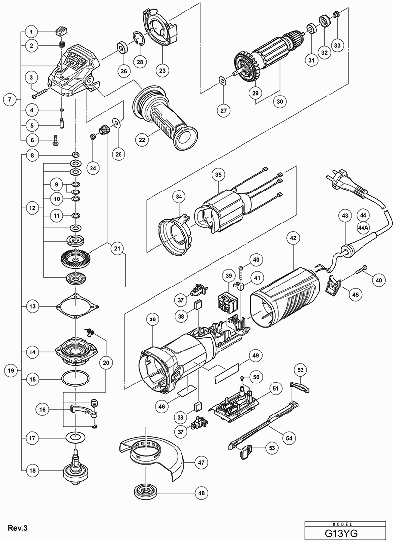 Liste de pièces de rechange des Hikoki G13YGWQZ