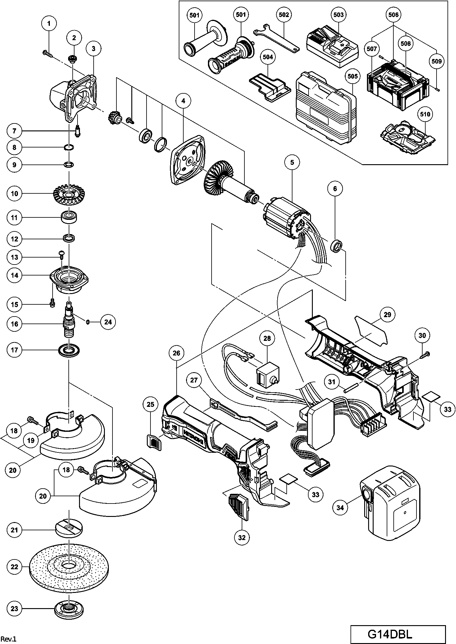 Liste de pièces de rechange des Hikoki G14DBL
