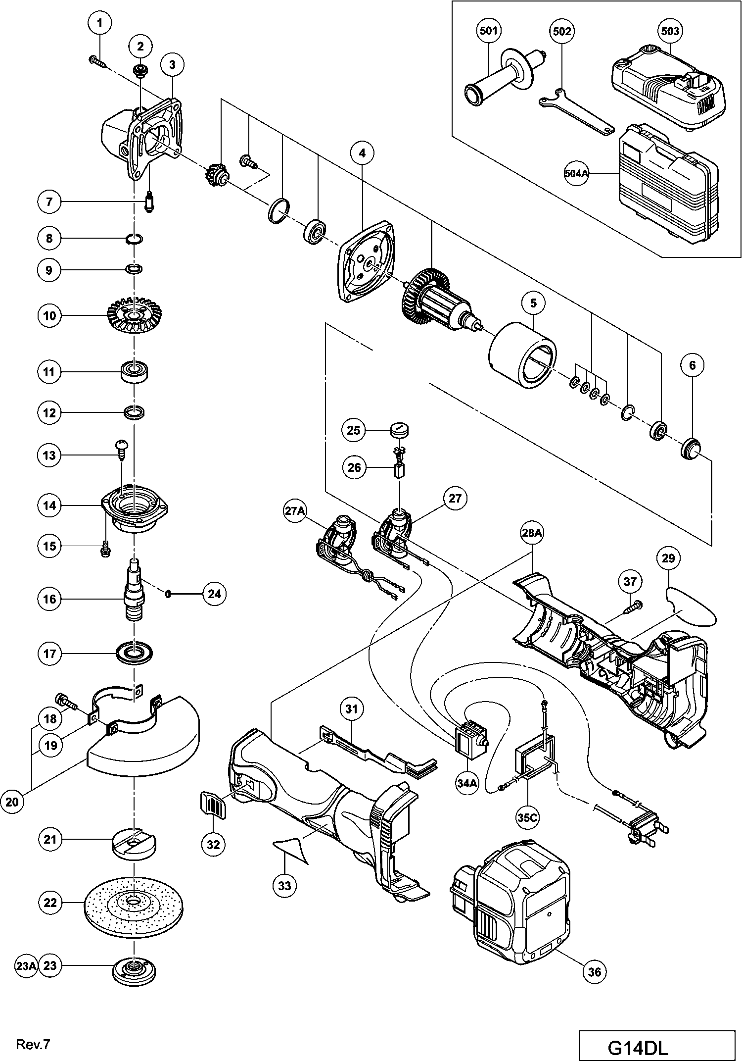 Liste de pièces de rechange des Hikoki G14DL