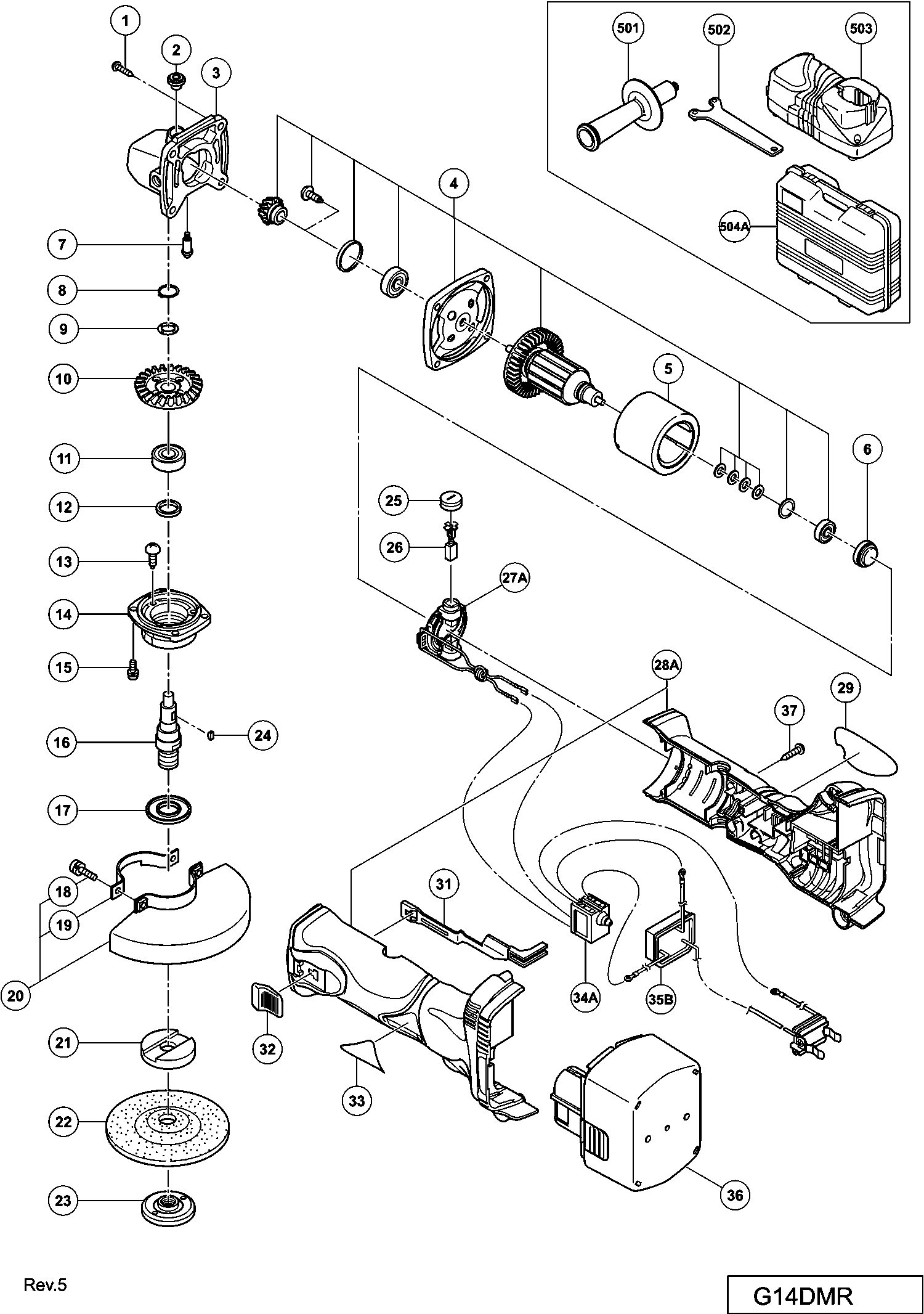 Vous trouverez ici toutes les pièces et dessins disponibles du 'Hikoki G14DMR'. De là, vous pouvez commander directement toutes les pièces souhaitées. De nombreuses pièces doivent être commandées auprès du fabricant, selon la marque, cela prend une à quatre semaines. Toutes les informations dont nous disposons se trouvent sur notre site Web, nous ne pouvons pas vous conseiller sur ce dont vous avez besoin, pour cela vous devrez retourner la machine pour réparation. Veuillez noter ce qui suit lors de la commande: