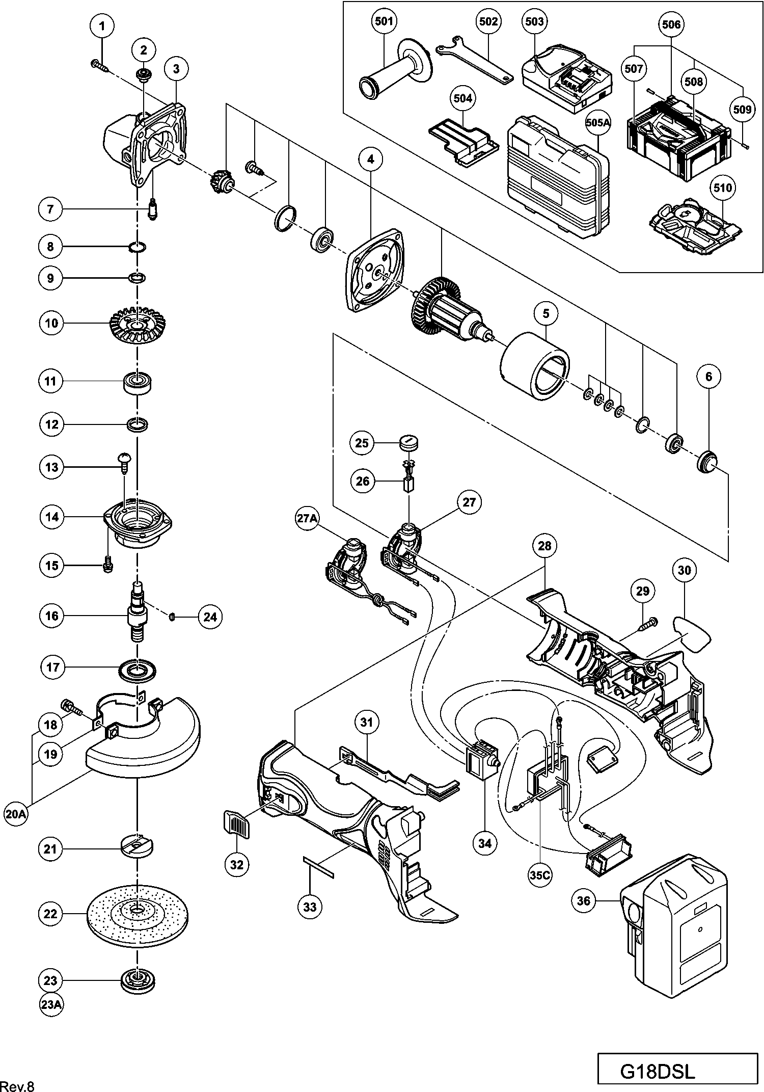 Liste de pièces de rechange des Hikoki G18DSL