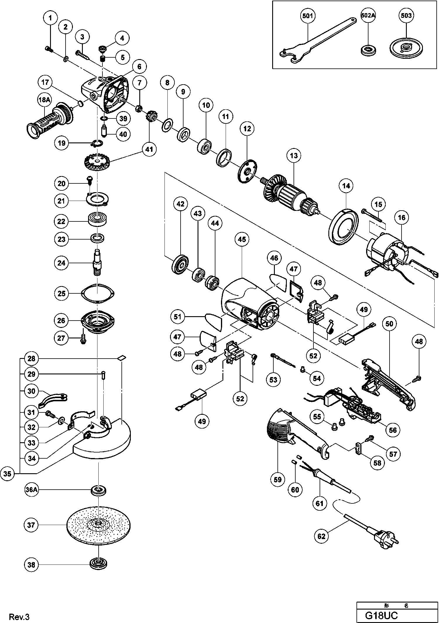 Liste de pièces de rechange des Hikoki G18UC