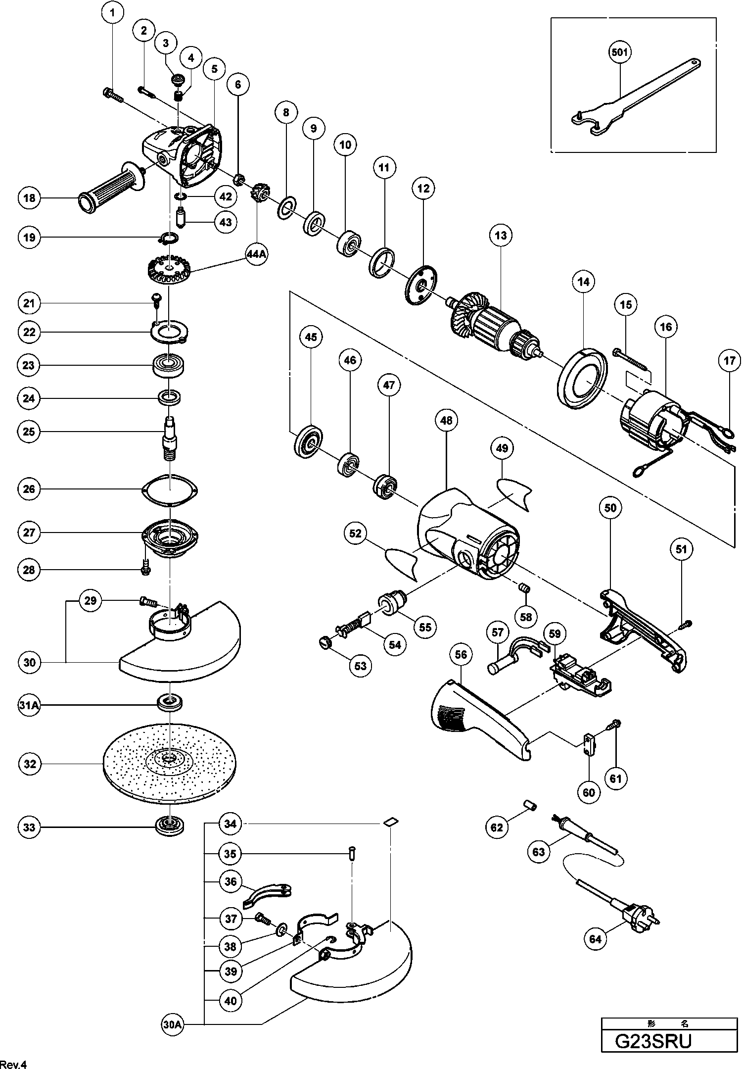 Liste de pièces de rechange des Hikoki G23SRU
