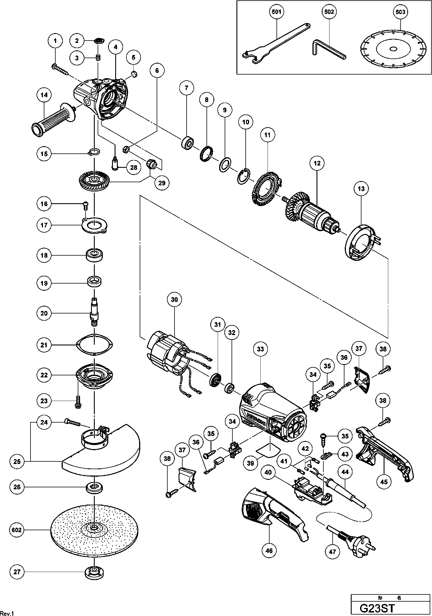 Vous trouverez ici toutes les pièces et dessins disponibles du 'Hikoki G23ST'. De là, vous pouvez commander directement toutes les pièces souhaitées. De nombreuses pièces doivent être commandées auprès du fabricant, selon la marque, cela prend une à quatre semaines. Toutes les informations dont nous disposons se trouvent sur notre site Web, nous ne pouvons pas vous conseiller sur ce dont vous avez besoin, pour cela vous devrez retourner la machine pour réparation. Veuillez noter ce qui suit lors de la commande: