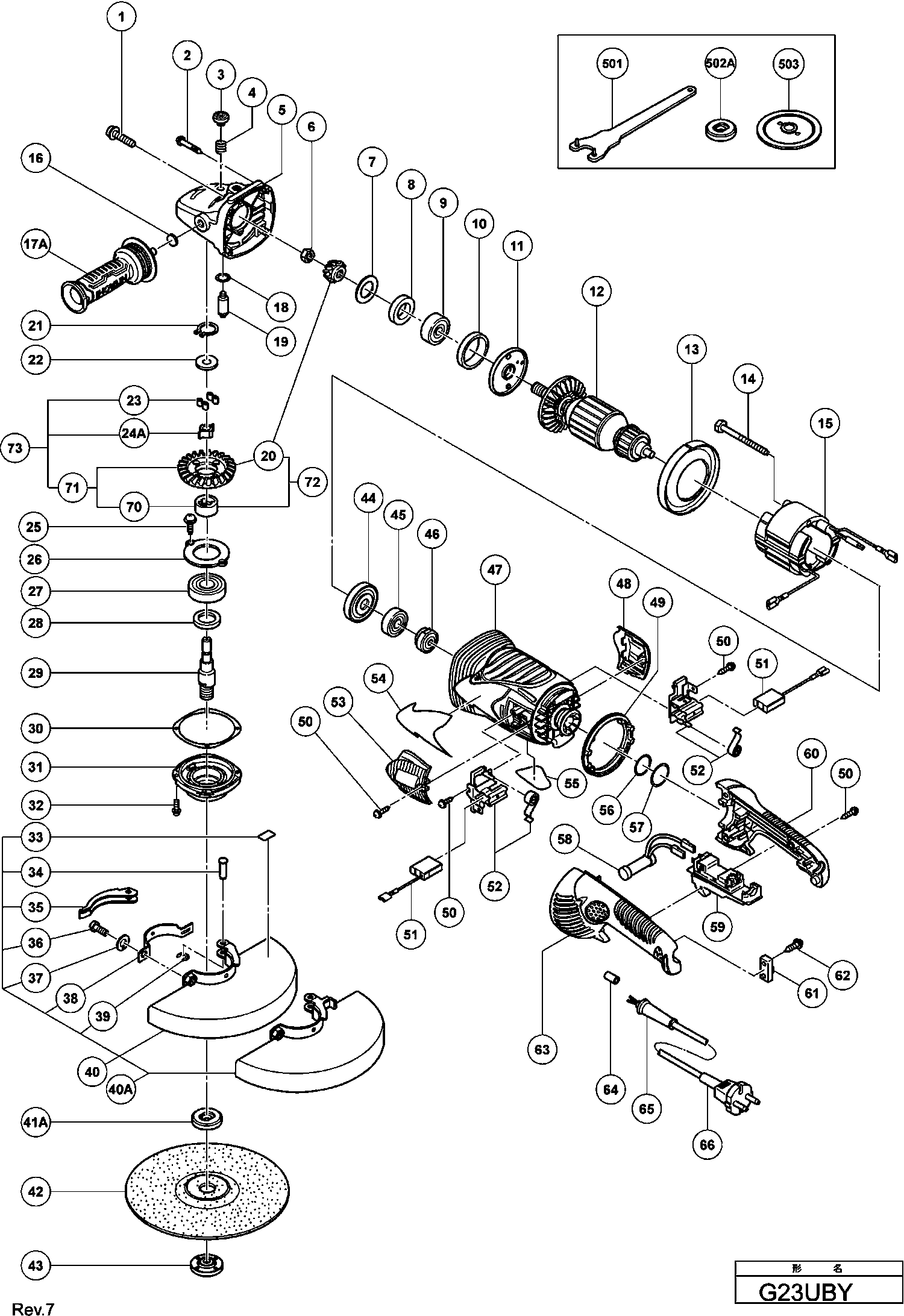 Liste de pièces de rechange des Hikoki G23UBY