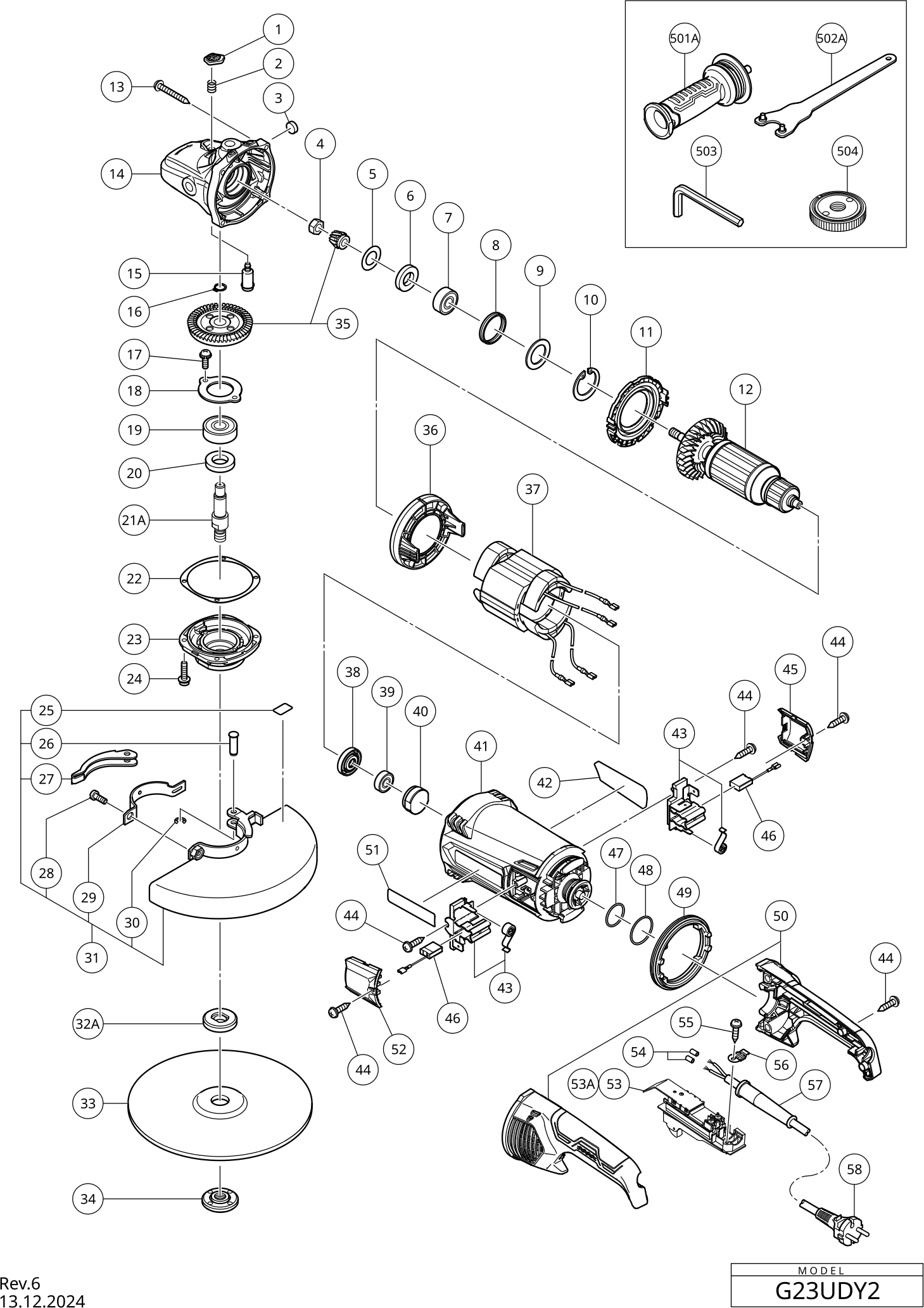 Vous trouverez ici toutes les pièces et dessins disponibles du 'Hikoki G23UDY2'. De là, vous pouvez commander directement toutes les pièces souhaitées. De nombreuses pièces doivent être commandées auprès du fabricant, selon la marque, cela prend une à quatre semaines. Toutes les informations dont nous disposons se trouvent sur notre site Web, nous ne pouvons pas vous conseiller sur ce dont vous avez besoin, pour cela vous devrez retourner la machine pour réparation. Veuillez noter ce qui suit lors de la commande: