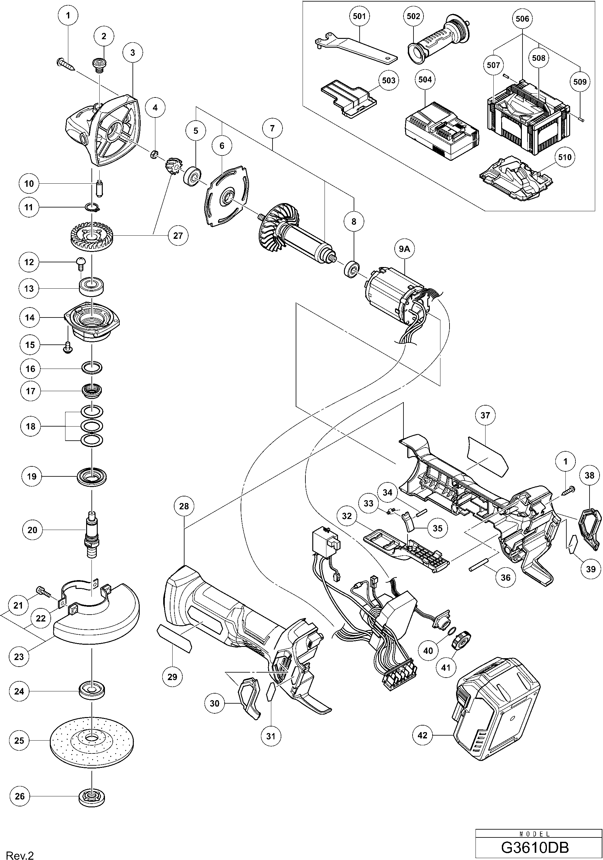 Vous trouverez ici toutes les pièces et dessins disponibles du 'Hikoki G3610DB'. De là, vous pouvez commander directement toutes les pièces souhaitées. De nombreuses pièces doivent être commandées auprès du fabricant, selon la marque, cela prend une à quatre semaines. Toutes les informations dont nous disposons se trouvent sur notre site Web, nous ne pouvons pas vous conseiller sur ce dont vous avez besoin, pour cela vous devrez retourner la machine pour réparation. Veuillez noter ce qui suit lors de la commande:
