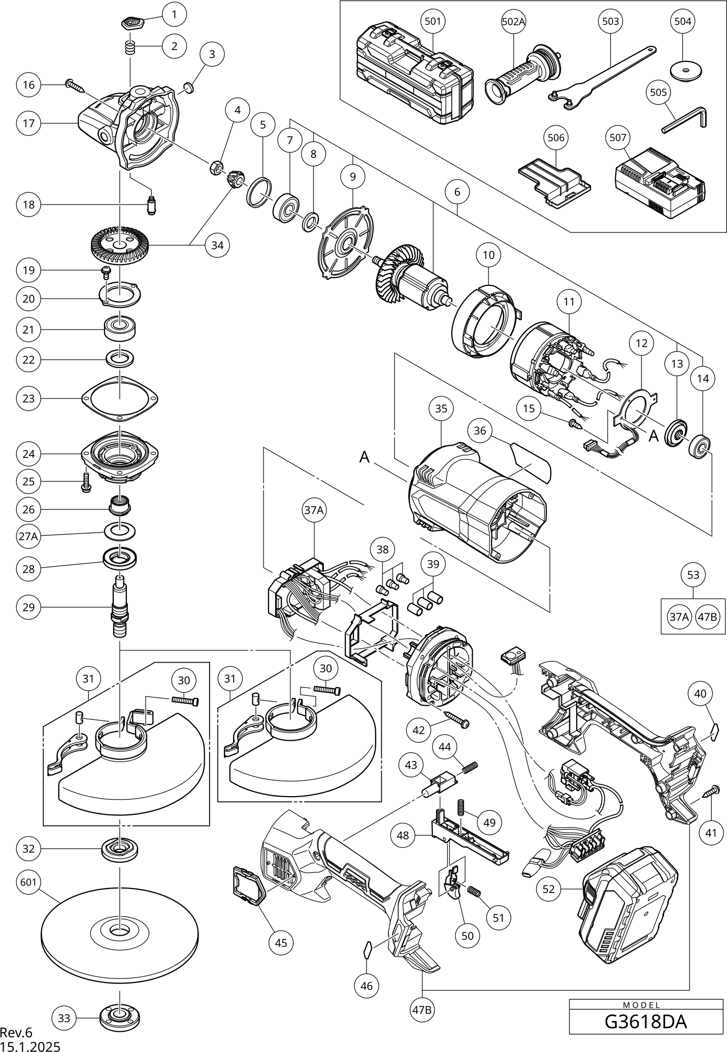 Vous trouverez ici toutes les pièces et dessins disponibles du 'Hikoki G3618DA'. De là, vous pouvez commander directement toutes les pièces souhaitées. De nombreuses pièces doivent être commandées auprès du fabricant, selon la marque, cela prend une à quatre semaines. Toutes les informations dont nous disposons se trouvent sur notre site Web, nous ne pouvons pas vous conseiller sur ce dont vous avez besoin, pour cela vous devrez retourner la machine pour réparation. Veuillez noter ce qui suit lors de la commande: