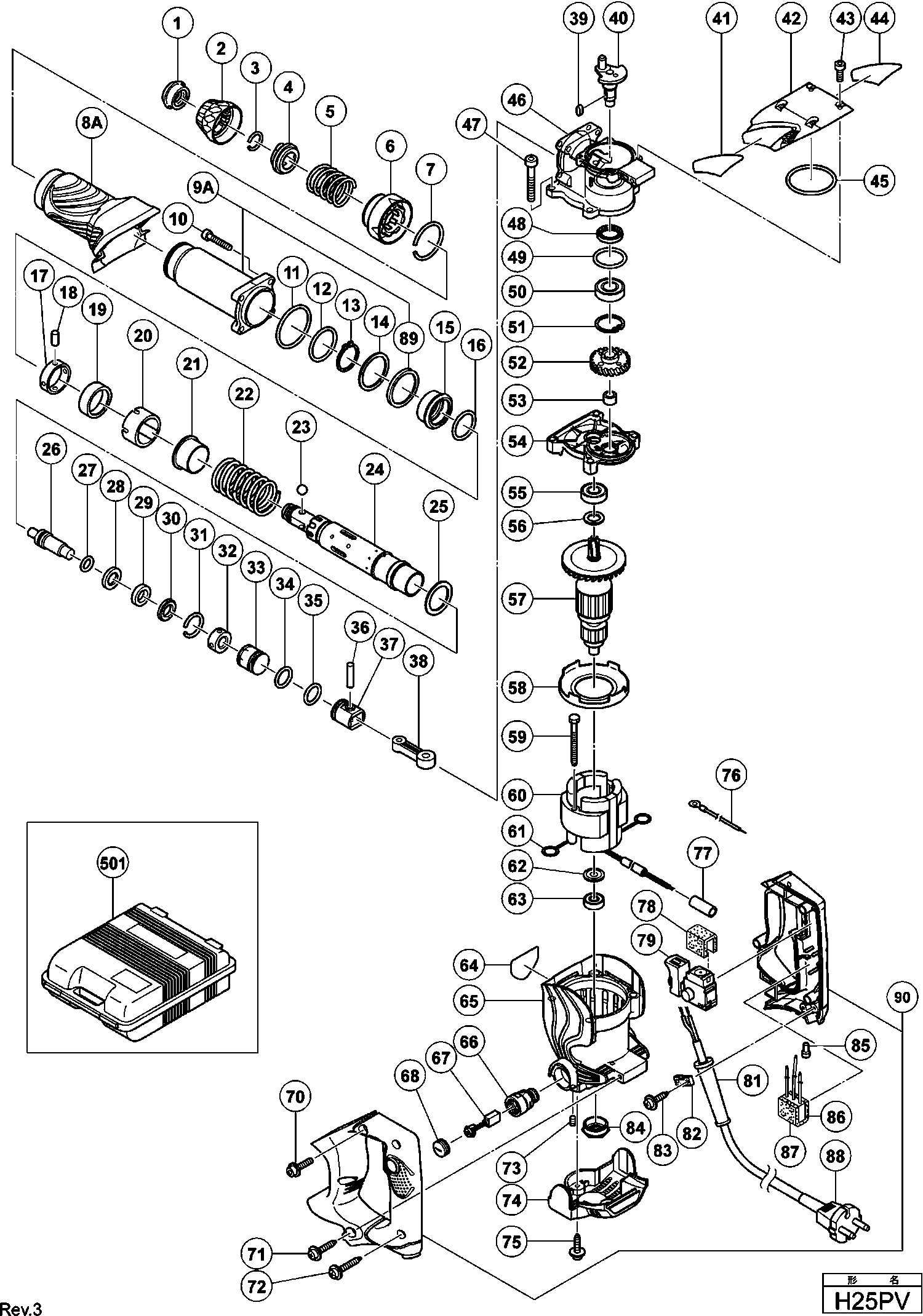Liste de pièces de rechange des Hikoki H25PV