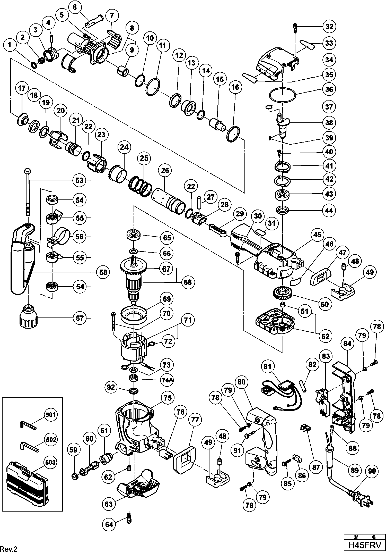 Liste de pièces de rechange des Hikoki H45FRV