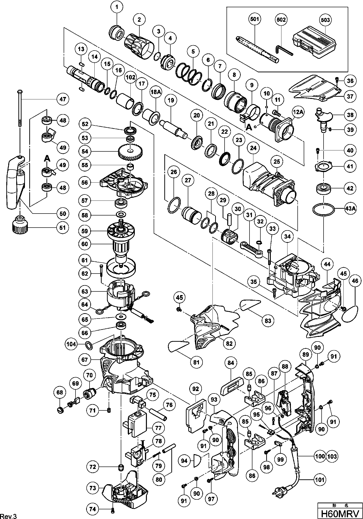 Liste de pièces de rechange des Hikoki H60MRV