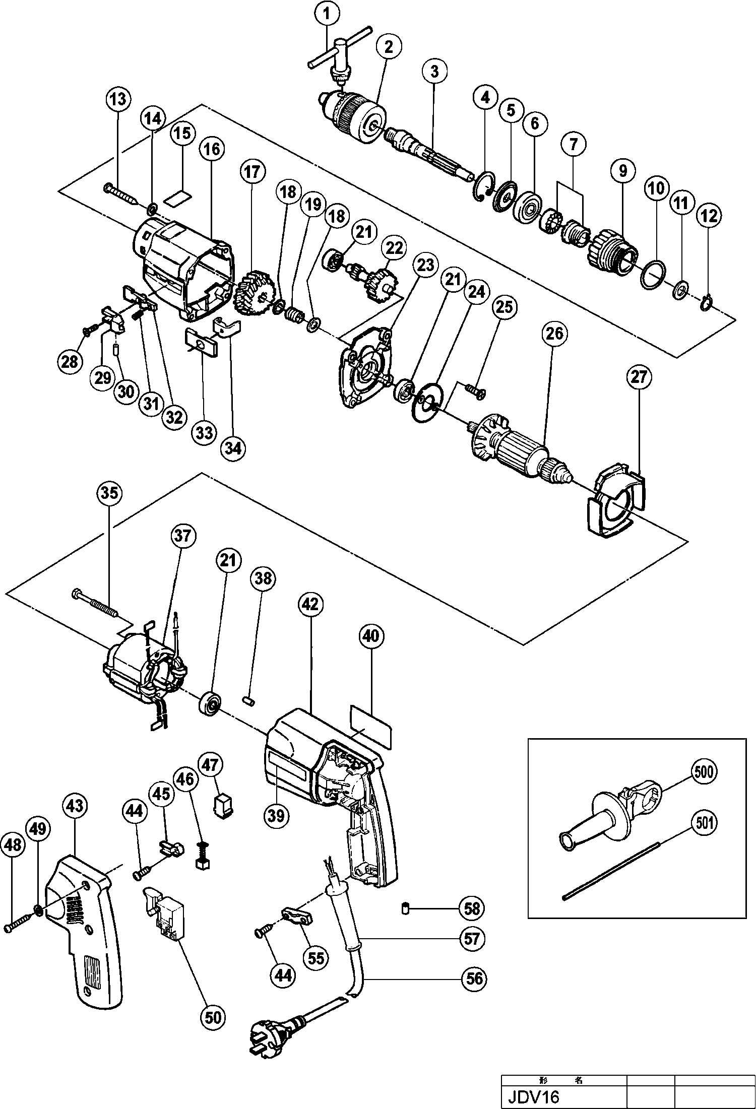 Vous trouverez ici toutes les pièces et dessins disponibles du 'Hikoki JDV16'. De là, vous pouvez commander directement toutes les pièces souhaitées. De nombreuses pièces doivent être commandées auprès du fabricant, selon la marque, cela prend une à quatre semaines. Toutes les informations dont nous disposons se trouvent sur notre site Web, nous ne pouvons pas vous conseiller sur ce dont vous avez besoin, pour cela vous devrez retourner la machine pour réparation. Veuillez noter ce qui suit lors de la commande: