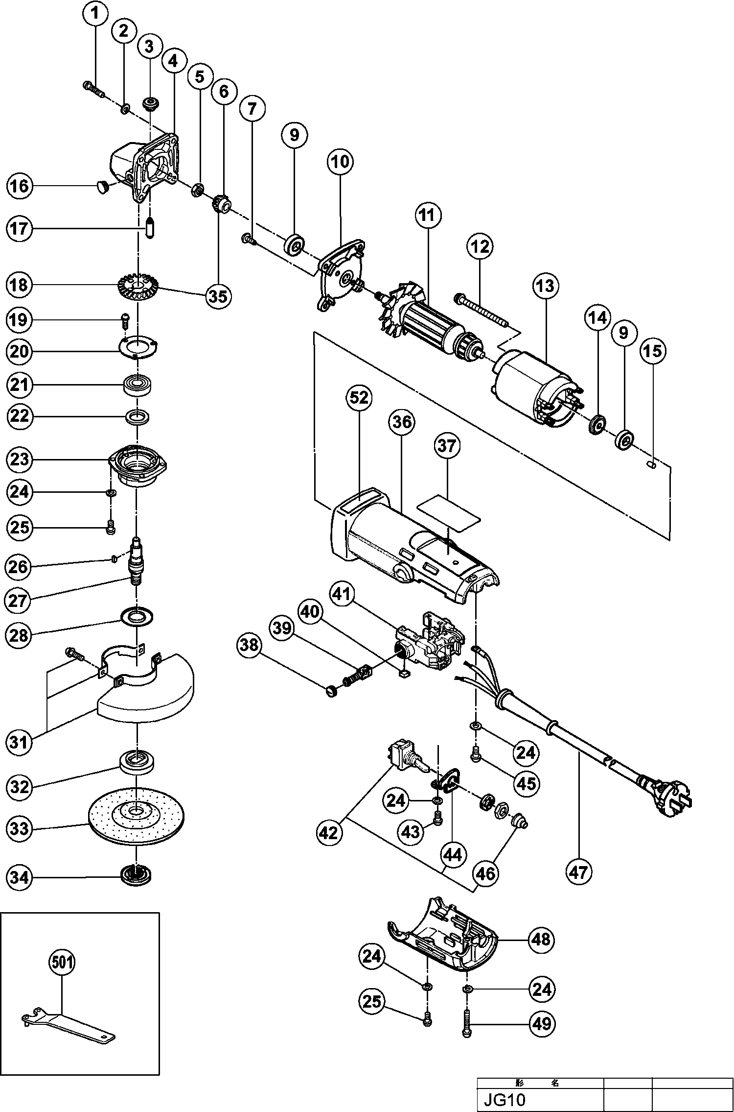 Liste de pièces de rechange des Hikoki JG10