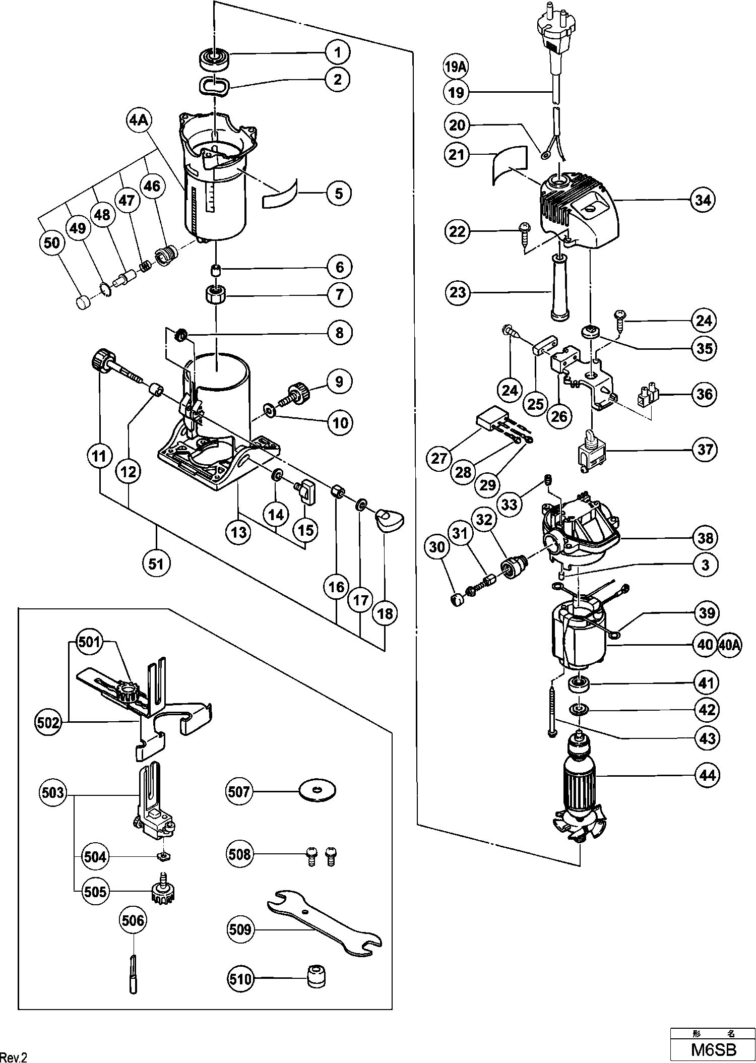 Vous trouverez ici toutes les pièces et dessins disponibles du 'Hikoki M6SB'. De là, vous pouvez commander directement toutes les pièces souhaitées. De nombreuses pièces doivent être commandées auprès du fabricant, selon la marque, cela prend une à quatre semaines. Toutes les informations dont nous disposons se trouvent sur notre site Web, nous ne pouvons pas vous conseiller sur ce dont vous avez besoin, pour cela vous devrez retourner la machine pour réparation. Veuillez noter ce qui suit lors de la commande: