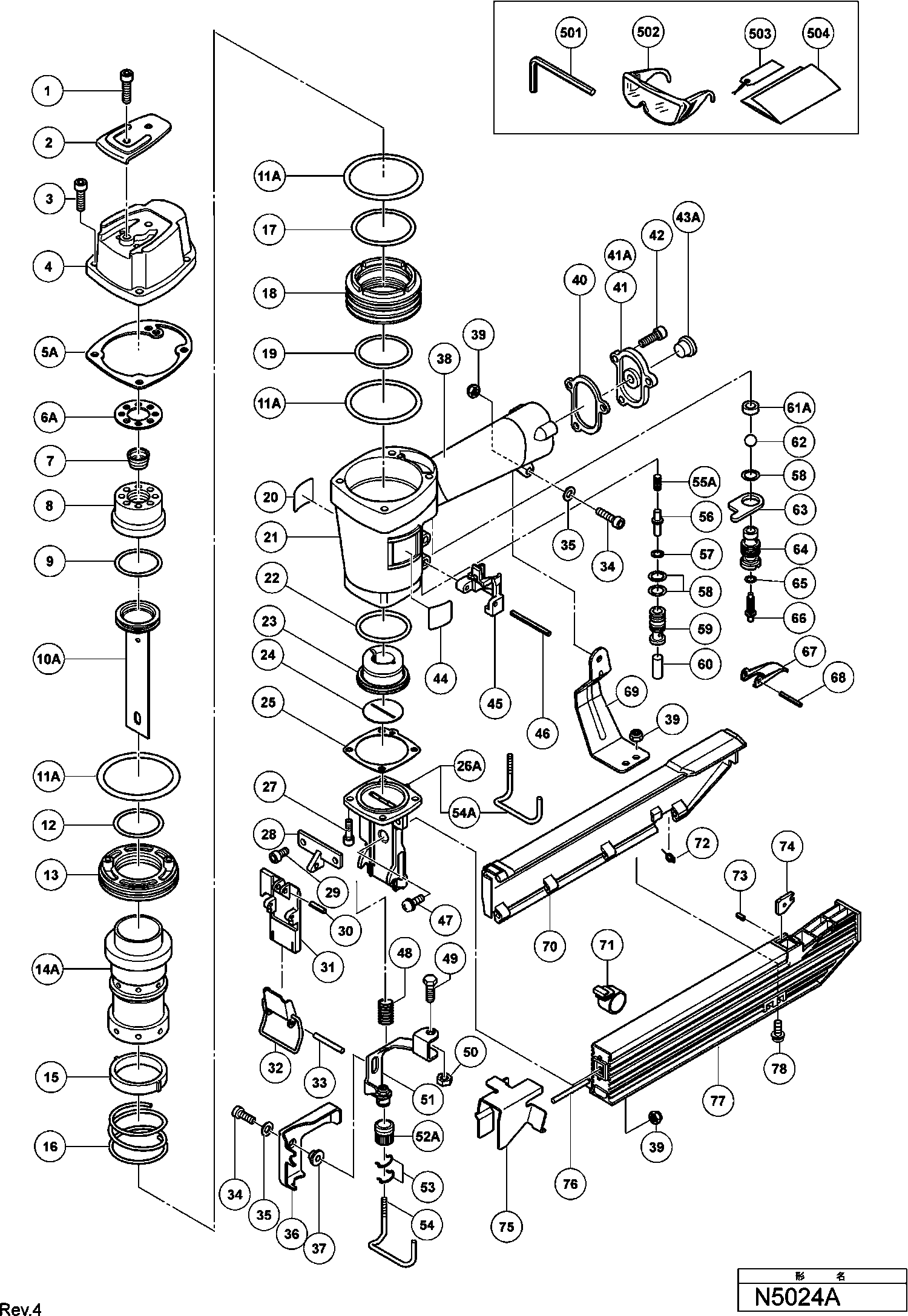 Liste de pièces de rechange des Hikoki N5024A