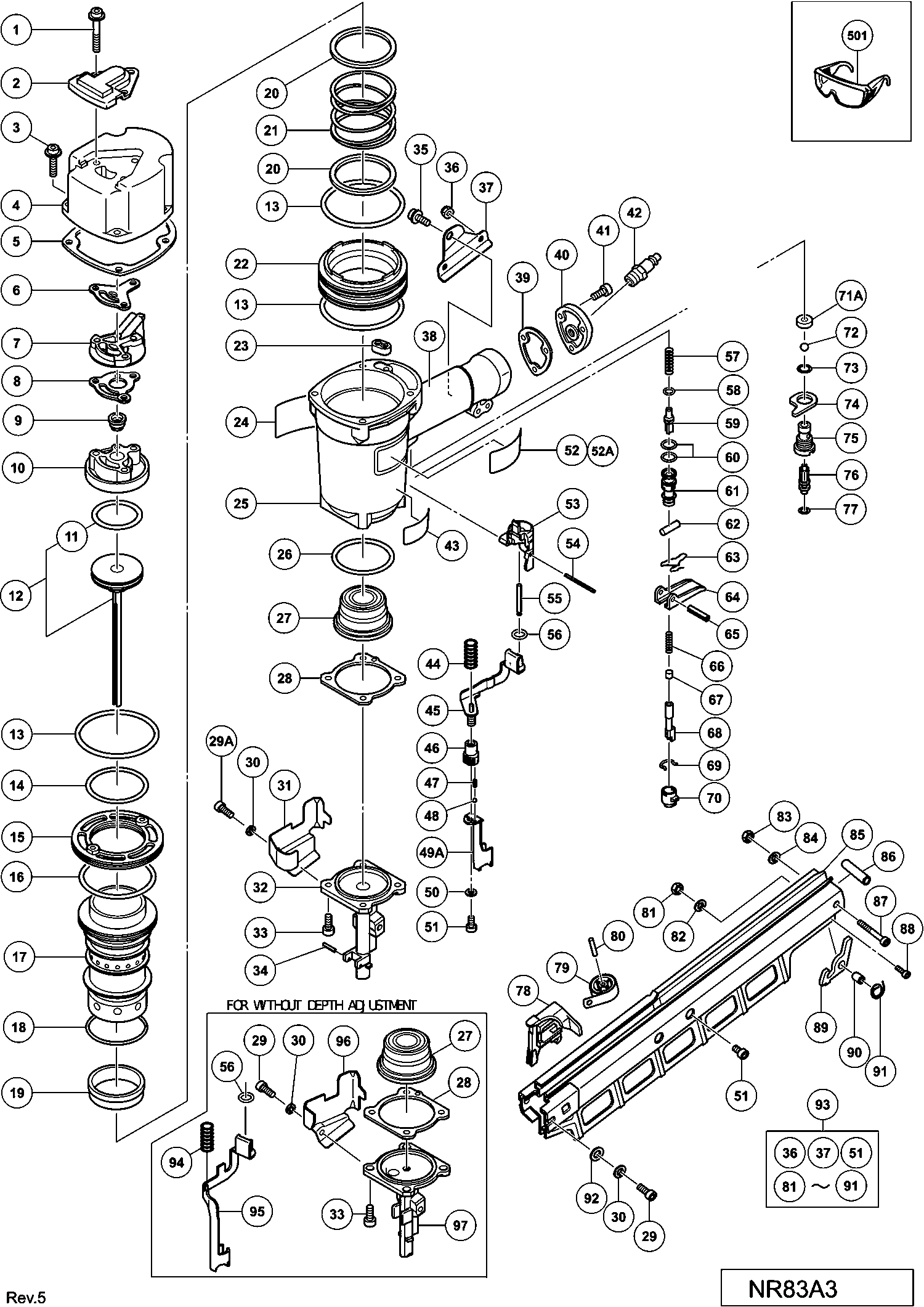 Vous trouverez ici toutes les pièces et dessins disponibles du 'Hikoki NR83A3'. De là, vous pouvez commander directement toutes les pièces souhaitées. De nombreuses pièces doivent être commandées auprès du fabricant, selon la marque, cela prend une à quatre semaines. Toutes les informations dont nous disposons se trouvent sur notre site Web, nous ne pouvons pas vous conseiller sur ce dont vous avez besoin, pour cela vous devrez retourner la machine pour réparation. Veuillez noter ce qui suit lors de la commande: