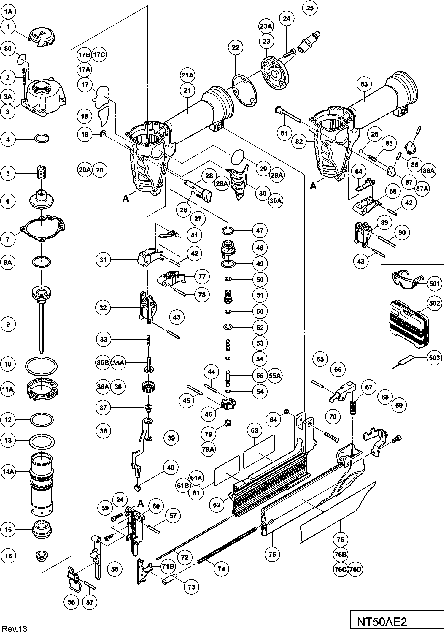 Vous trouverez ici toutes les pièces et dessins disponibles du 'Hikoki NT50AE2'. De là, vous pouvez commander directement toutes les pièces souhaitées. De nombreuses pièces doivent être commandées auprès du fabricant, selon la marque, cela prend une à quatre semaines. Toutes les informations dont nous disposons se trouvent sur notre site Web, nous ne pouvons pas vous conseiller sur ce dont vous avez besoin, pour cela vous devrez retourner la machine pour réparation. Veuillez noter ce qui suit lors de la commande: