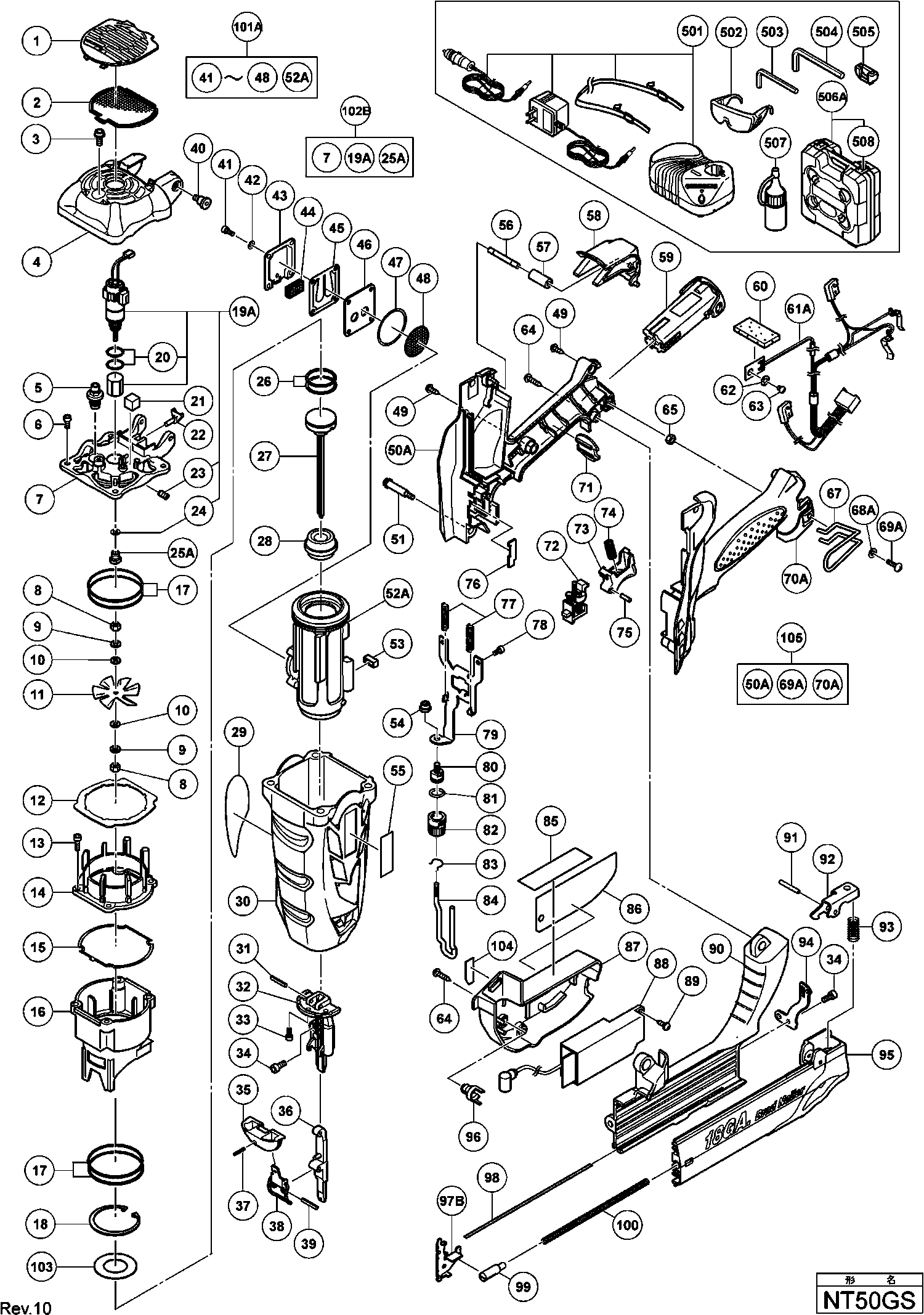 Liste de pièces de rechange des Hikoki NT50GS