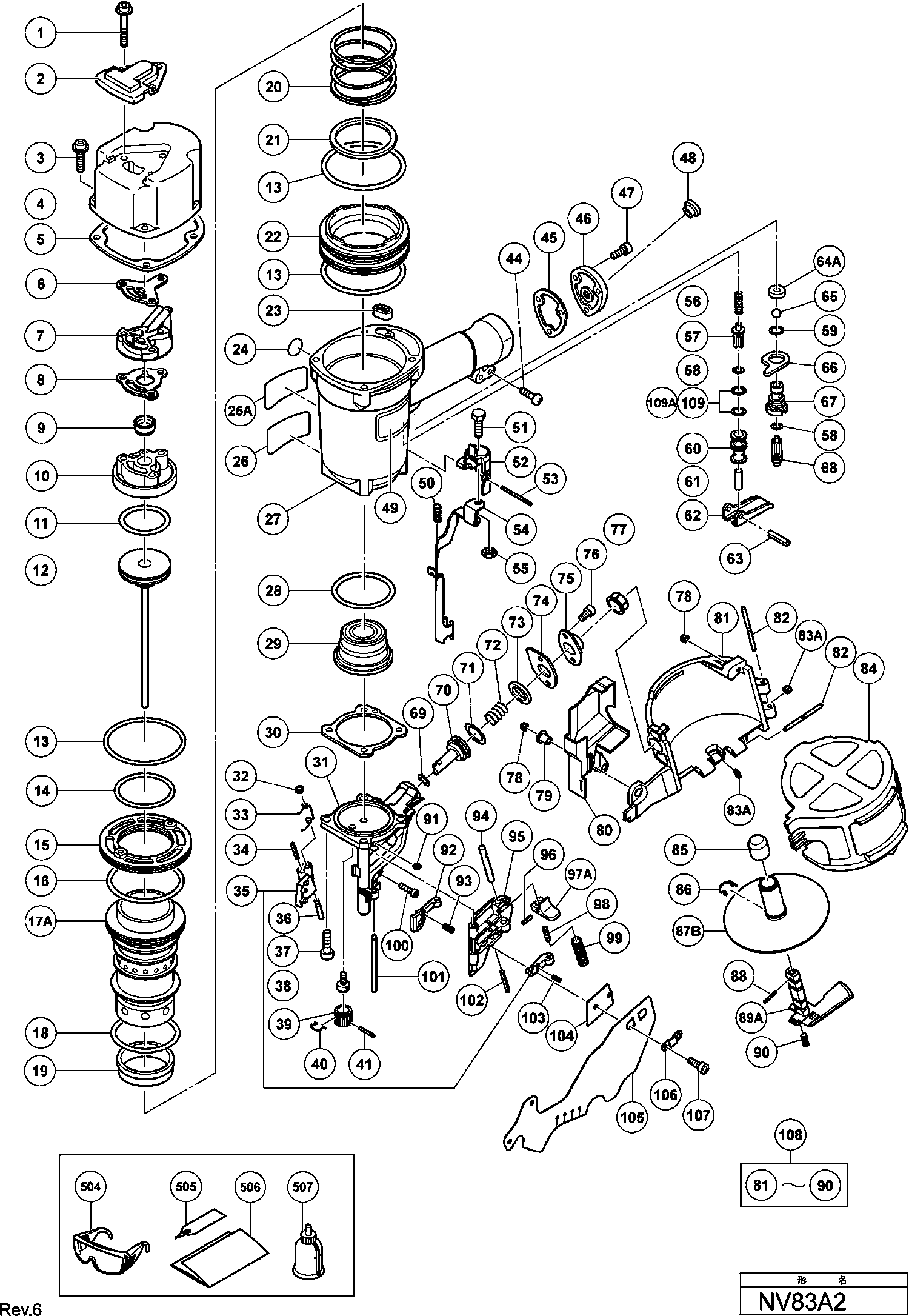 Liste de pièces de rechange des Hikoki NV83A2