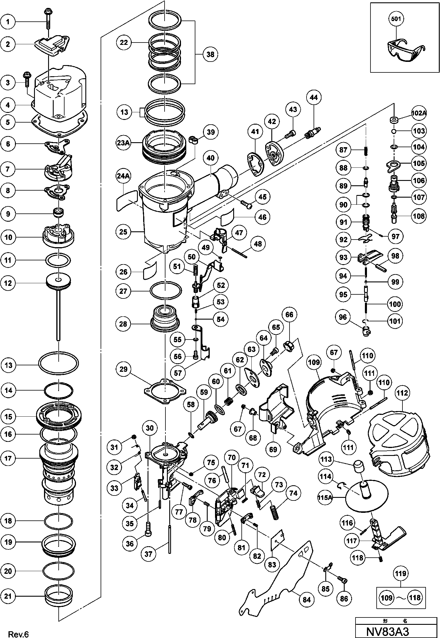 Liste de pièces de rechange des Hikoki NV83A3