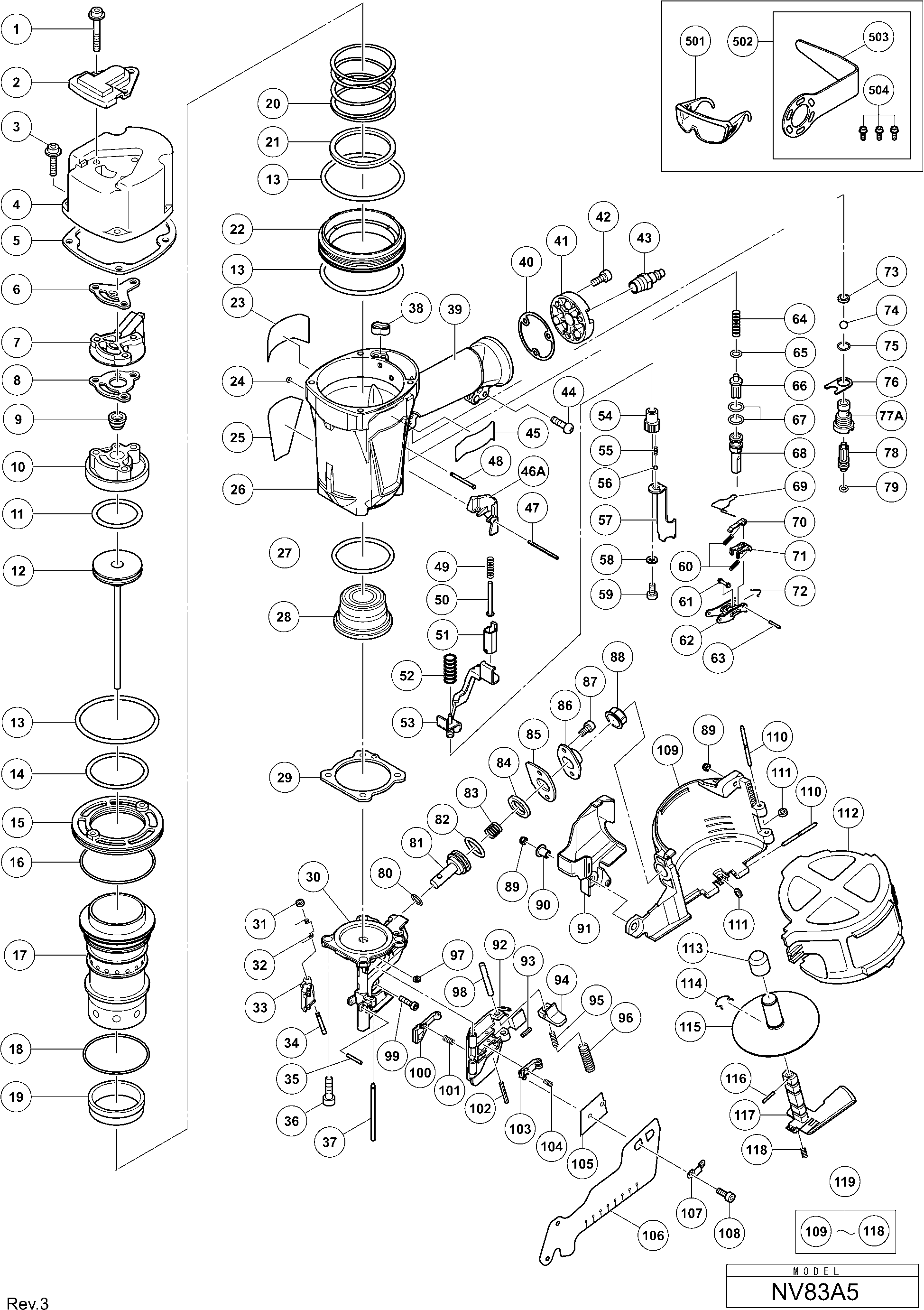 Liste de pièces de rechange des Hikoki NV83A5