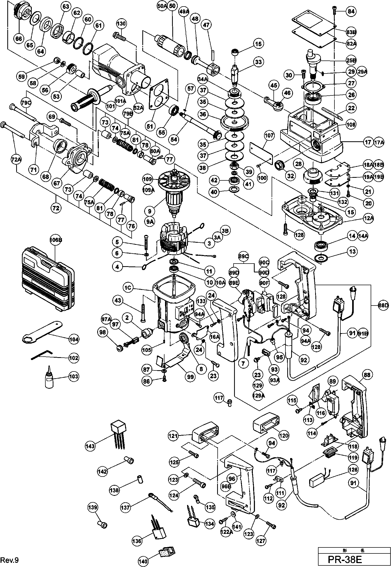 Vous trouverez ici toutes les pièces et dessins disponibles du 'Hikoki PR-38E'. De là, vous pouvez commander directement toutes les pièces souhaitées. De nombreuses pièces doivent être commandées auprès du fabricant, selon la marque, cela prend une à quatre semaines. Toutes les informations dont nous disposons se trouvent sur notre site Web, nous ne pouvons pas vous conseiller sur ce dont vous avez besoin, pour cela vous devrez retourner la machine pour réparation. Veuillez noter ce qui suit lors de la commande: