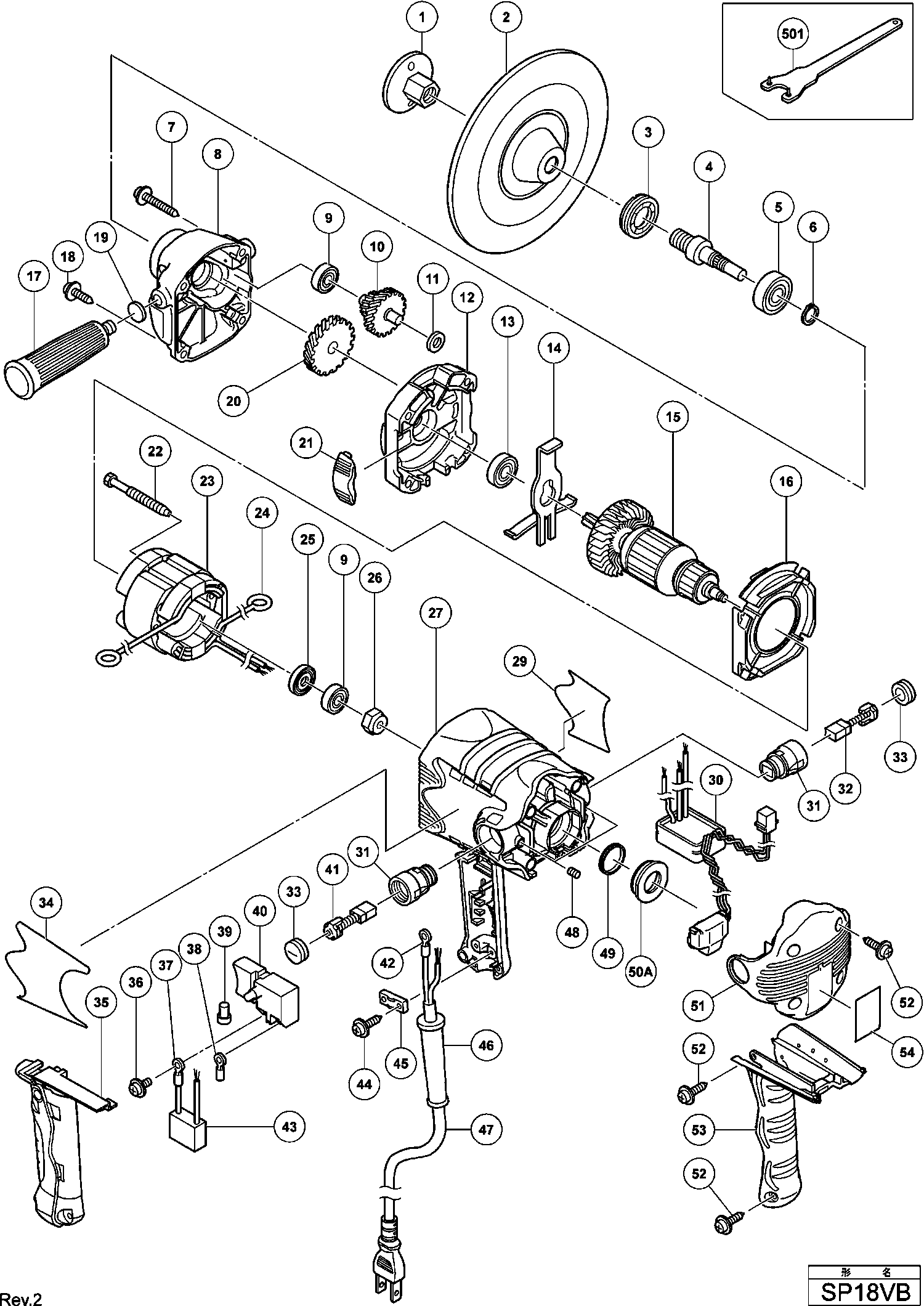Liste de pièces de rechange des Hikoki SP18VB