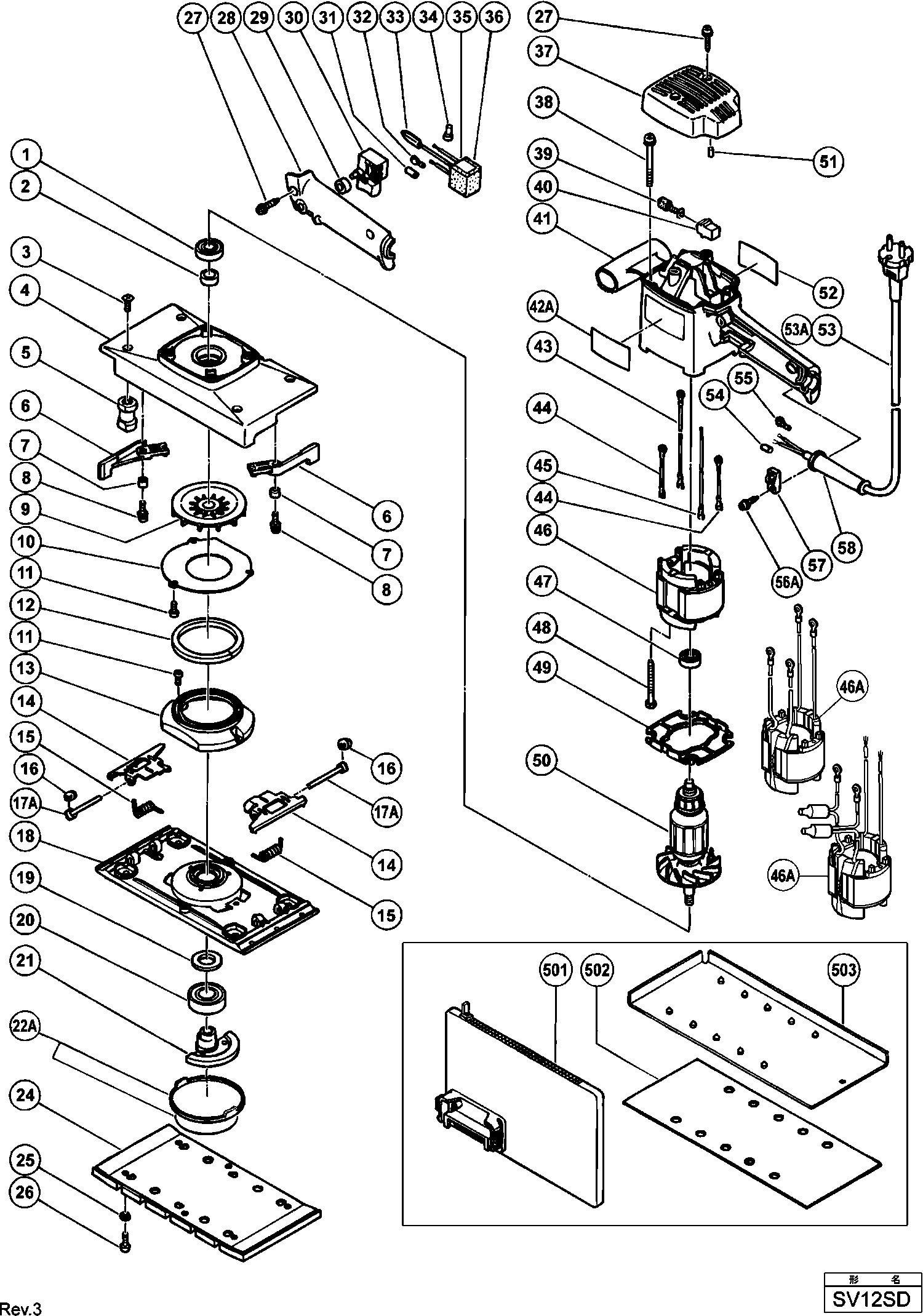 Liste de pièces de rechange des Hikoki SV12SD