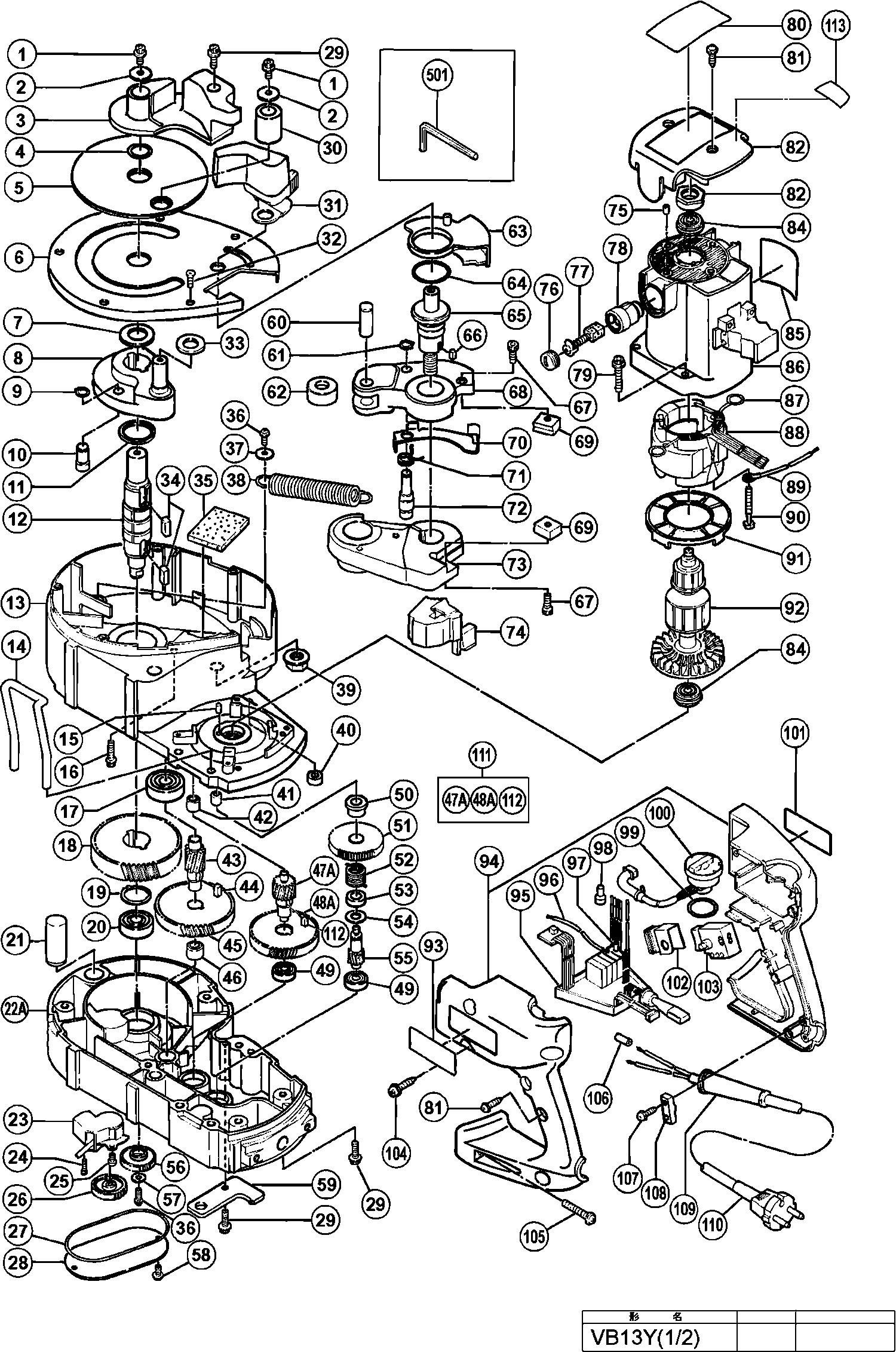 Vous trouverez ici toutes les pièces et dessins disponibles du 'Hikoki VB13Y'. De là, vous pouvez commander directement toutes les pièces souhaitées. De nombreuses pièces doivent être commandées auprès du fabricant, selon la marque, cela prend une à quatre semaines. Toutes les informations dont nous disposons se trouvent sur notre site Web, nous ne pouvons pas vous conseiller sur ce dont vous avez besoin, pour cela vous devrez retourner la machine pour réparation. Veuillez noter ce qui suit lors de la commande: