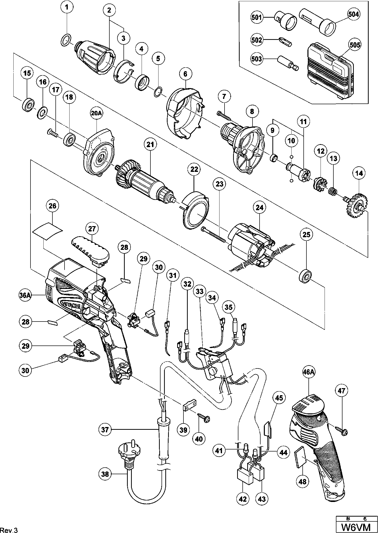 Liste de pièces de rechange des Hikoki W6VM