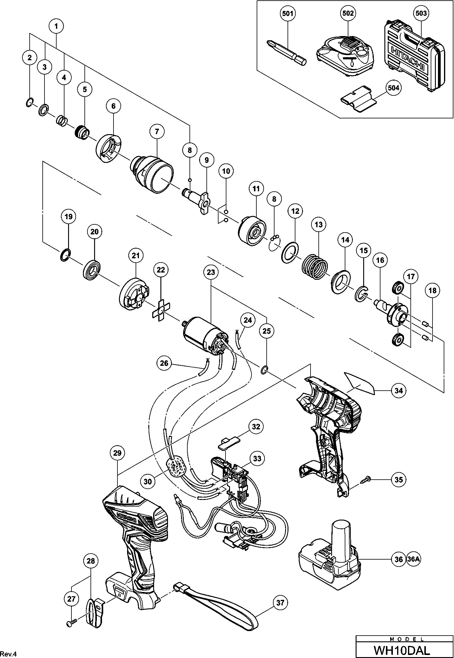 Liste de pièces de rechange des Hikoki WH10DAL