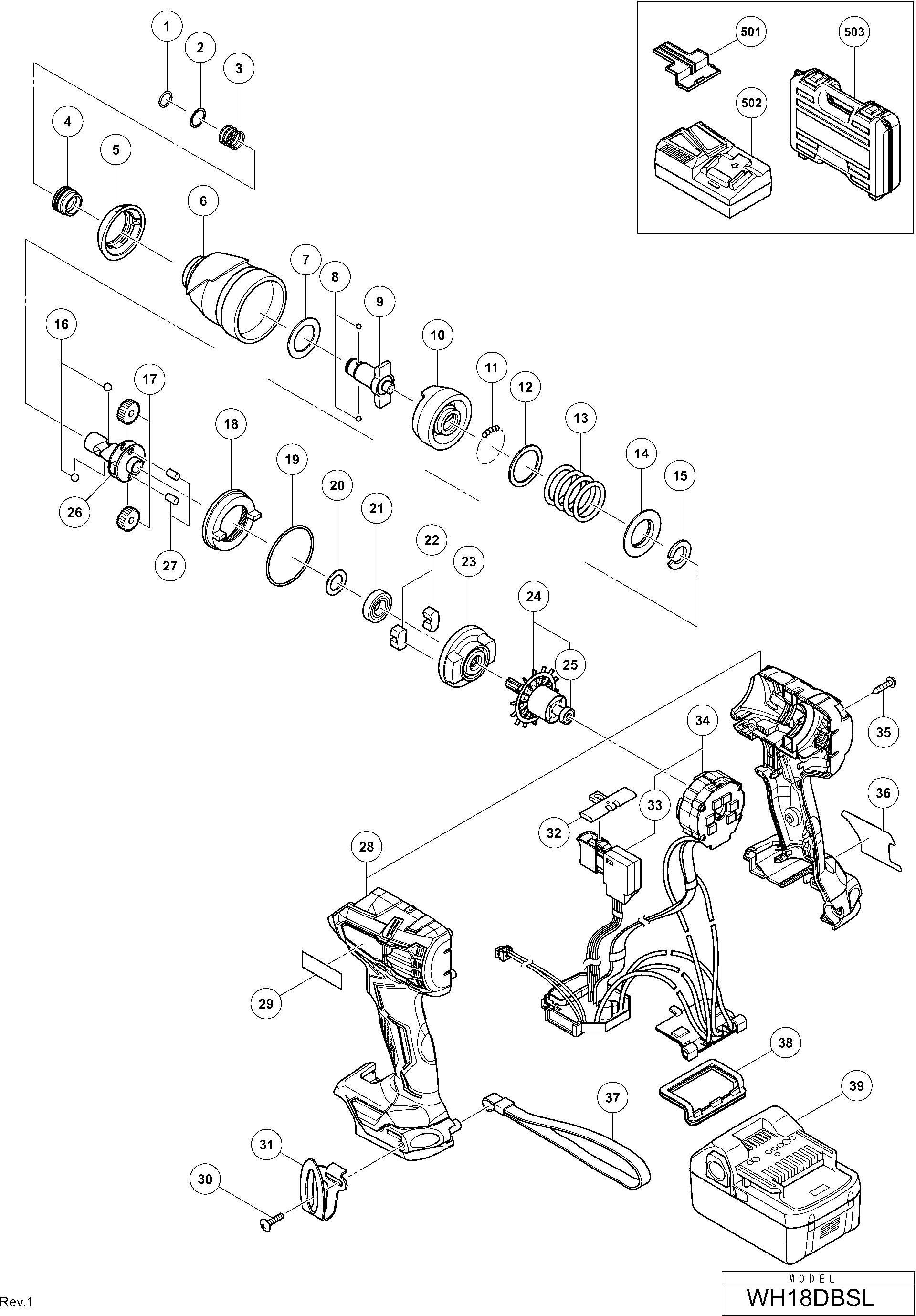 Liste de pièces de rechange des Hikoki WH18DBSL