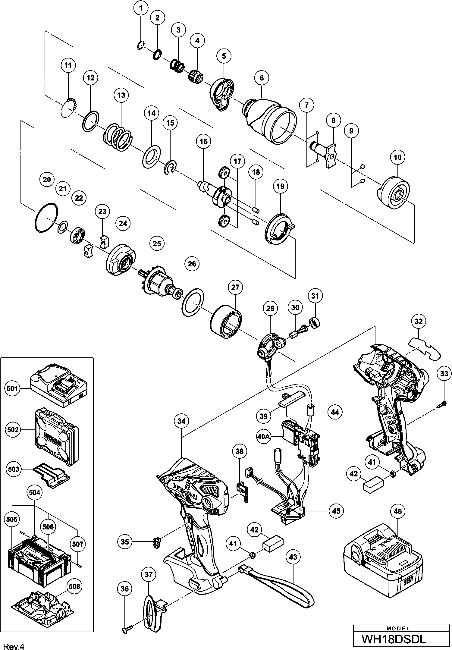 Liste de pièces de rechange des Hikoki WH18DSDL