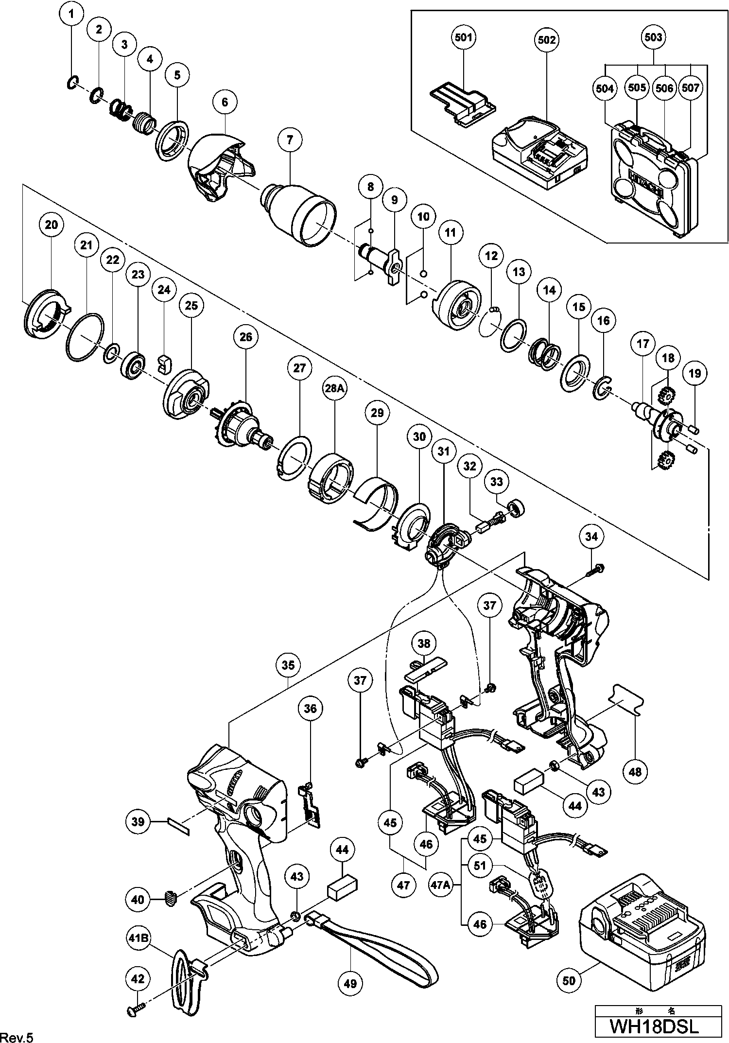Liste de pièces de rechange des Hikoki WH18DSL