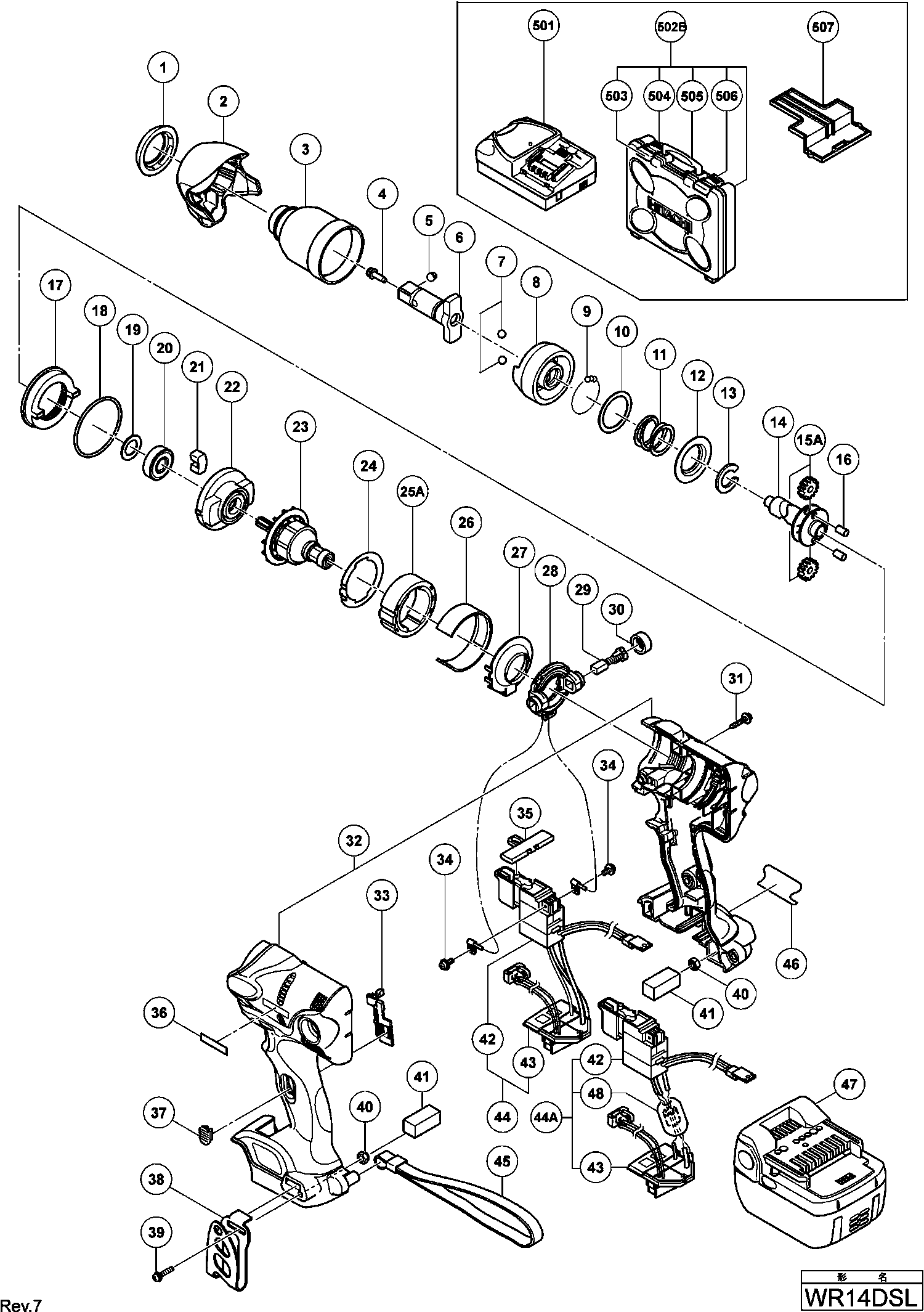 Vous trouverez ici toutes les pièces et dessins disponibles du 'Hikoki WR14DSL'. De là, vous pouvez commander directement toutes les pièces souhaitées. De nombreuses pièces doivent être commandées auprès du fabricant, selon la marque, cela prend une à quatre semaines. Toutes les informations dont nous disposons se trouvent sur notre site Web, nous ne pouvons pas vous conseiller sur ce dont vous avez besoin, pour cela vous devrez retourner la machine pour réparation. Veuillez noter ce qui suit lors de la commande: