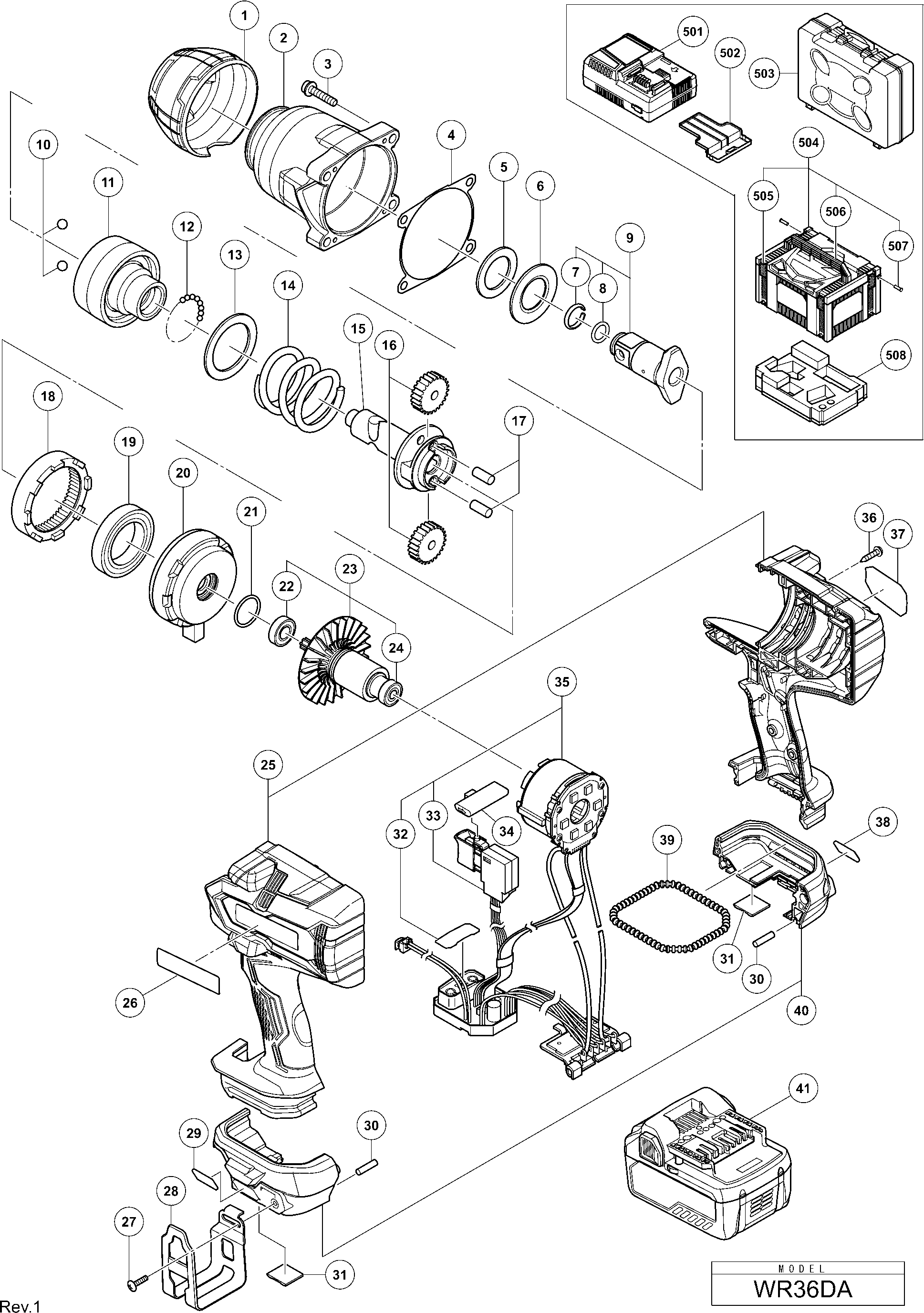 Vous trouverez ici toutes les pièces et dessins disponibles du 'Hikoki WR36DA'. De là, vous pouvez commander directement toutes les pièces souhaitées. De nombreuses pièces doivent être commandées auprès du fabricant, selon la marque, cela prend une à quatre semaines. Toutes les informations dont nous disposons se trouvent sur notre site Web, nous ne pouvons pas vous conseiller sur ce dont vous avez besoin, pour cela vous devrez retourner la machine pour réparation. Veuillez noter ce qui suit lors de la commande: