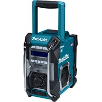DAB/DAB digitale radio: storingsvrije, betere geluidskwaliteit. Uitgerust met Bluetooth: voor het draadloos verbinden van smartphones voor het afspelen van muziek. De balans tussen bas en hoge tonen is erg goed. Tevens grote speakers. Voorzien van USB aansluiting om smartphone op aan te sluiten om op te kunnen laden. Goed beschermd tegen het binnendringen van stof en vocht. Heeft ook bereik op de FM-band. Digitale tuner met 5 preselecties en automatisch zender zoeken. Voorzien van een Aux aansluiting voor MP3-speler of Ipod (aansluitkabeltje niet inbegrepen). Groot digitaal LCD display met achtergrondverlichting en duidelijke cijfers. De flexibele FM antenne kan eenvoudig losgemaakt en in het deksel van het accucompartiment opgeborgen worden. Werkt op Makita 7,2 V t/m 18 V Li-ion accu's en op 230 V met meegeleverde adapter. Tot 11 uur luisterplezier op 1 volle acculading met 12 V Max (2,0 Ah) of tot max. 26 uur met 18 V (5,0 Ah). Let op: deze bouwradio is GEEN oplader. Let op: Makita Ni-Cd en Ni-MH accu's zijn niet geschikt. Ook G-accu's, BL1415G en BL1815G, werken niet. DAB weergave: zendernaam, programmatype, multiplexnaam, tijd/datum, frequentie, bitsnelheid/audiotype en signaalsterkte. FM weergave (RDS): zendernaam, radiotekst, programmatype, tijd/datum en frequentie.